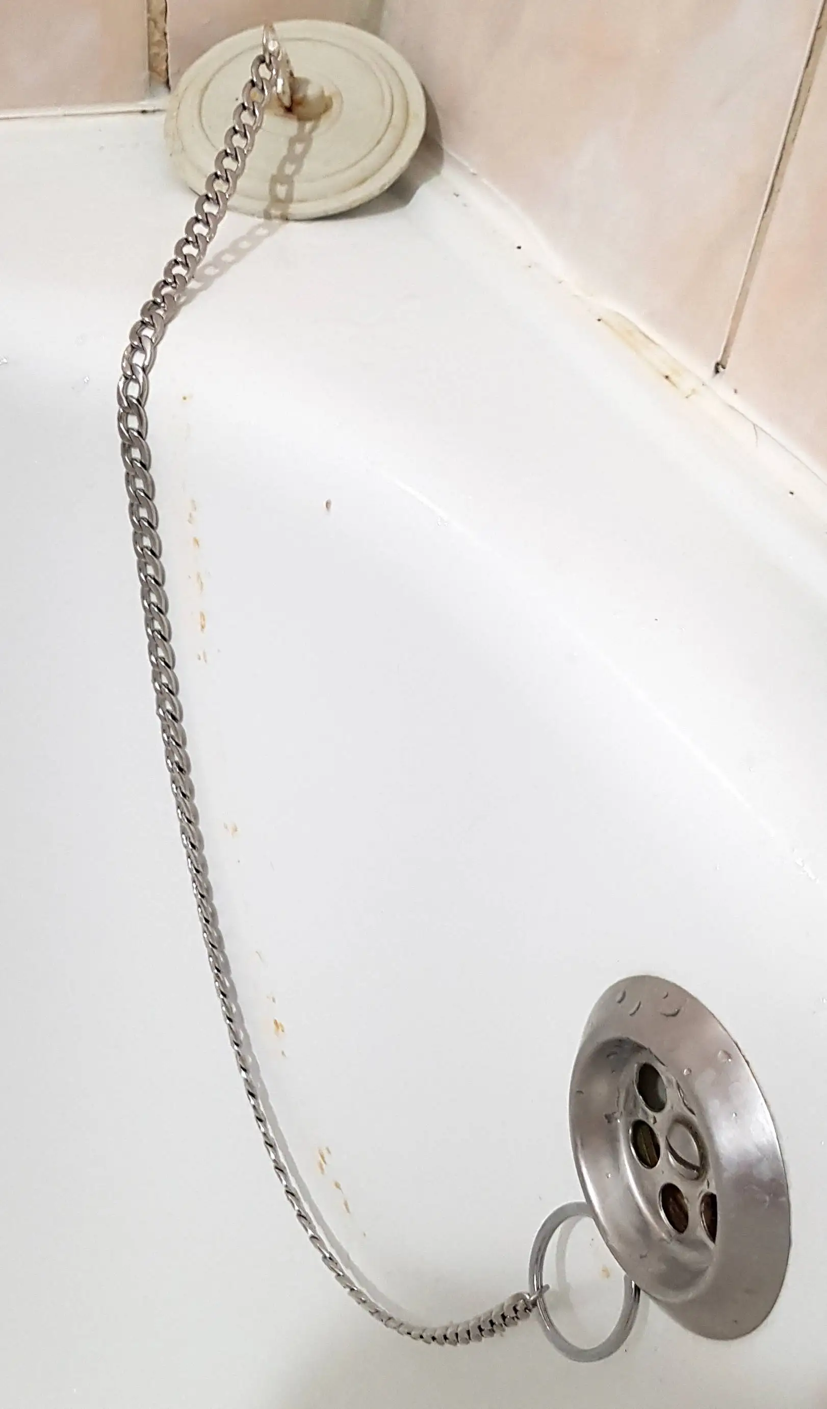 Цепочка неплохая. Металл позволил разогнуть и свести обратно звено цепи. Явных следов от плоскогубцев не осталось. Посмотрим как будет вести себя с водой. Надеюсь, хоть эта не проржавеет