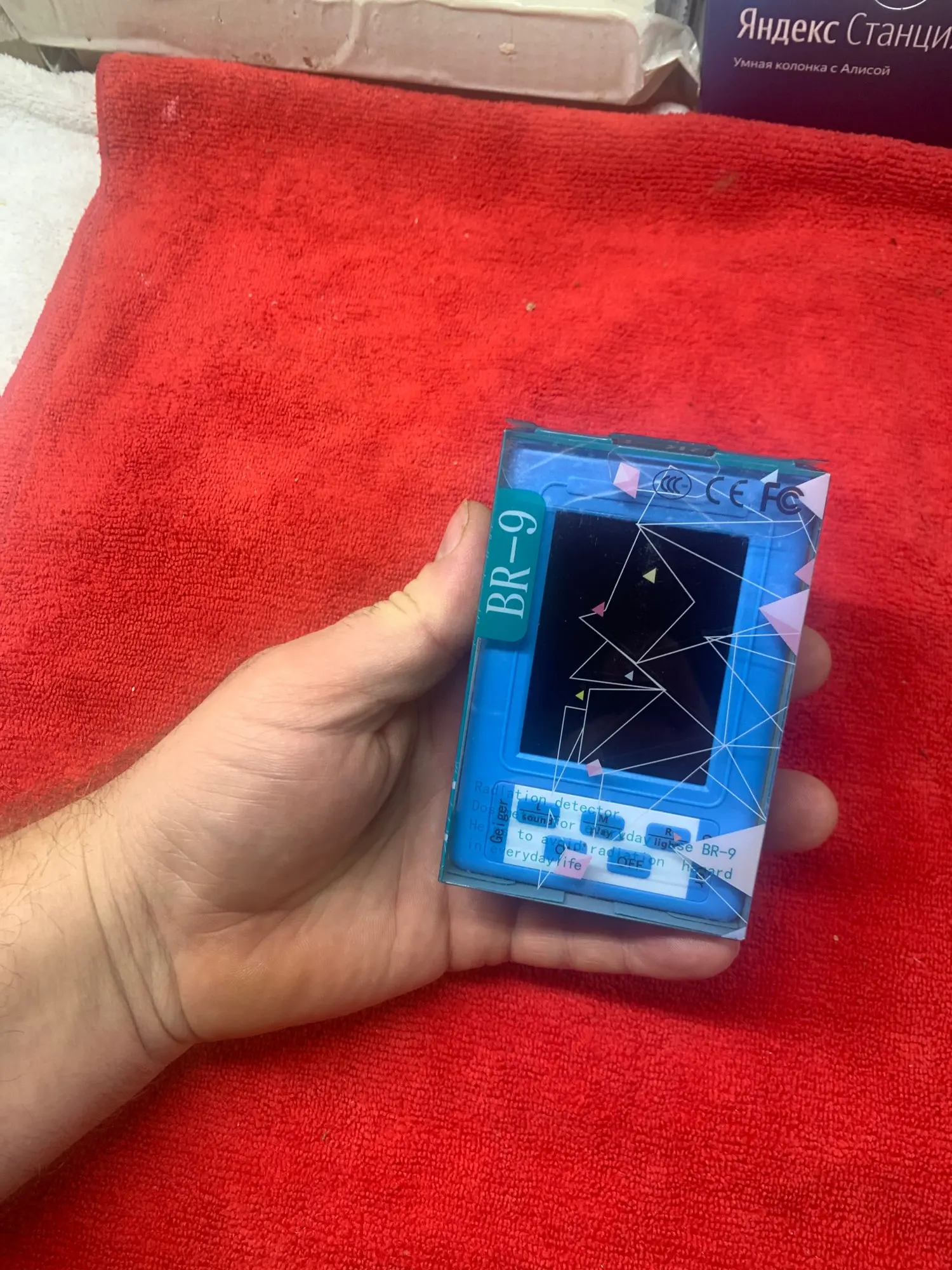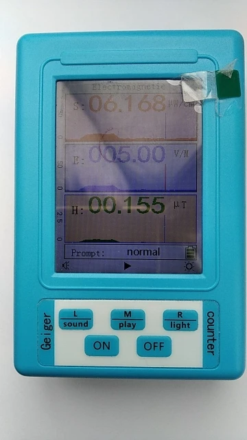 посылка пришла быстро . прибор работает на улице возле сот вышки и у микроволновки . живу напротив трех сот вышек . сделал вывод что в чернобыле безопасней