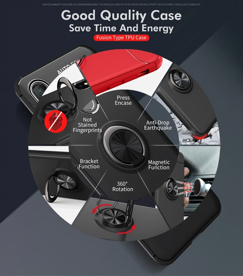Магнитный автомобильный чехол с кольцом-держателем для XiaoMi Mi 8 SE 6 5X 6X A1 A2 Lite RedMi 4A 4X NOTE 4 5A 5 Pro Prime 6 S2 6A MAX 3 2 MIX 2S 360