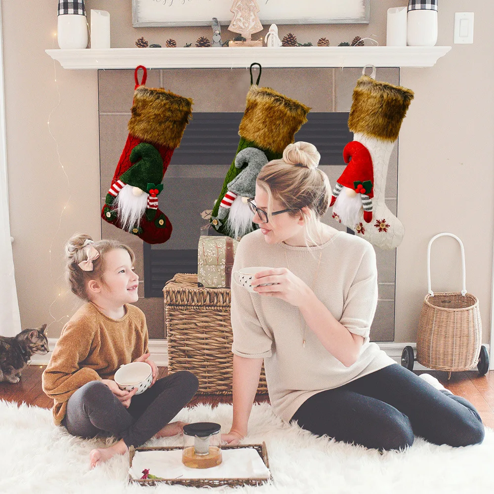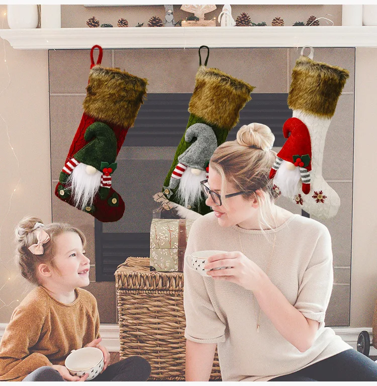 Рождественский чулок, украшение, креативная безликая кукла, пушистые рождественские носки, детский подарок, мешок для конфет, камин, праздник, домашний декор