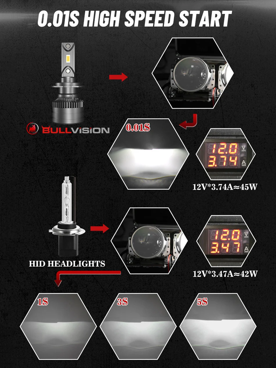 Светодиодный налобный фонарь Bullvision D2S, 20000LM D4S H7 H11 900...