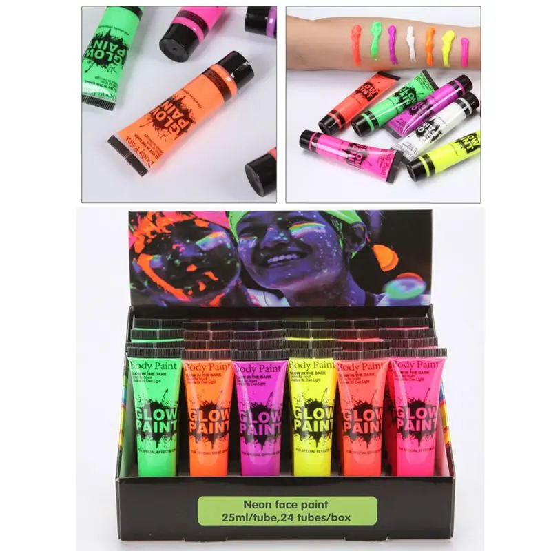 7 трубок 25 мл УФ светящийся черный свет светящаяся краска для лица...