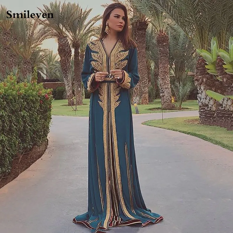 Smileven Long, марокканский кафтан, кружевное официальное вечернее платье с длинным рукавом и V-образным вырезом, мусульманское вечернее платье, платья для особых случаев Дубая icon star icon star icon star icon star icon star