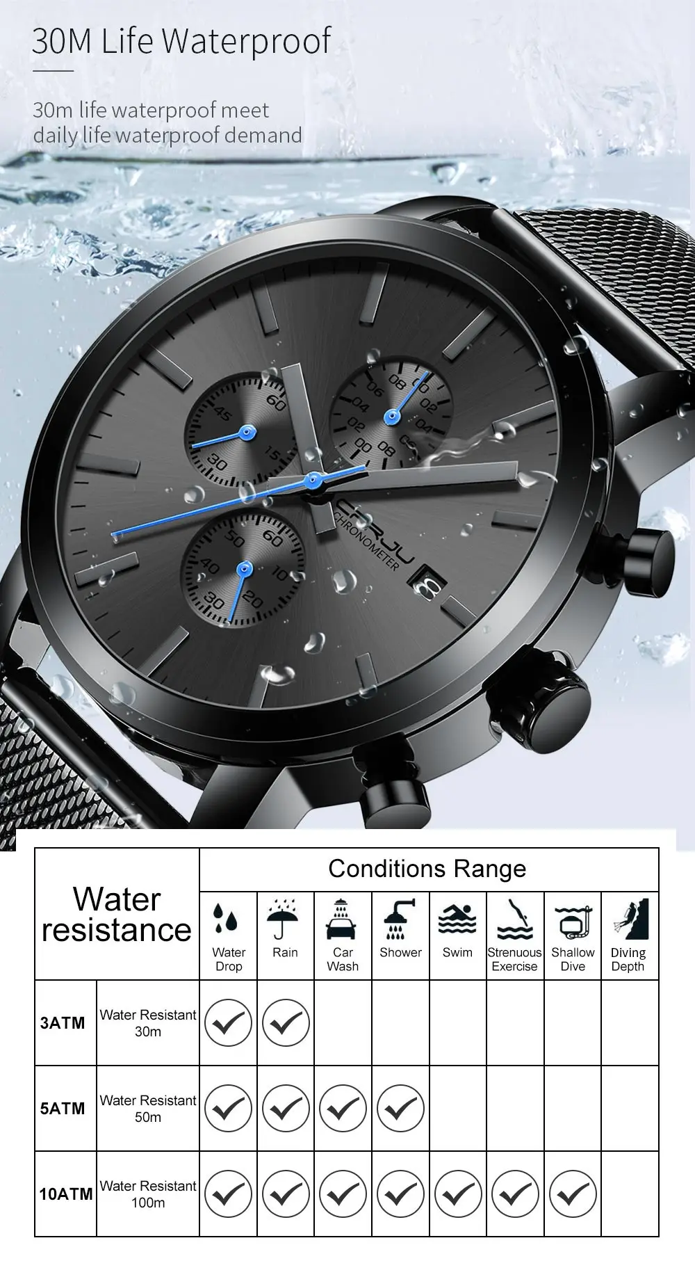 CRRJU модные мужские часы 2020 Роскошные Кварцевые часы ведущего бренда Военные Спортивные сетчатые ремешки водонепроницаемые наручные часы мужские Relogios