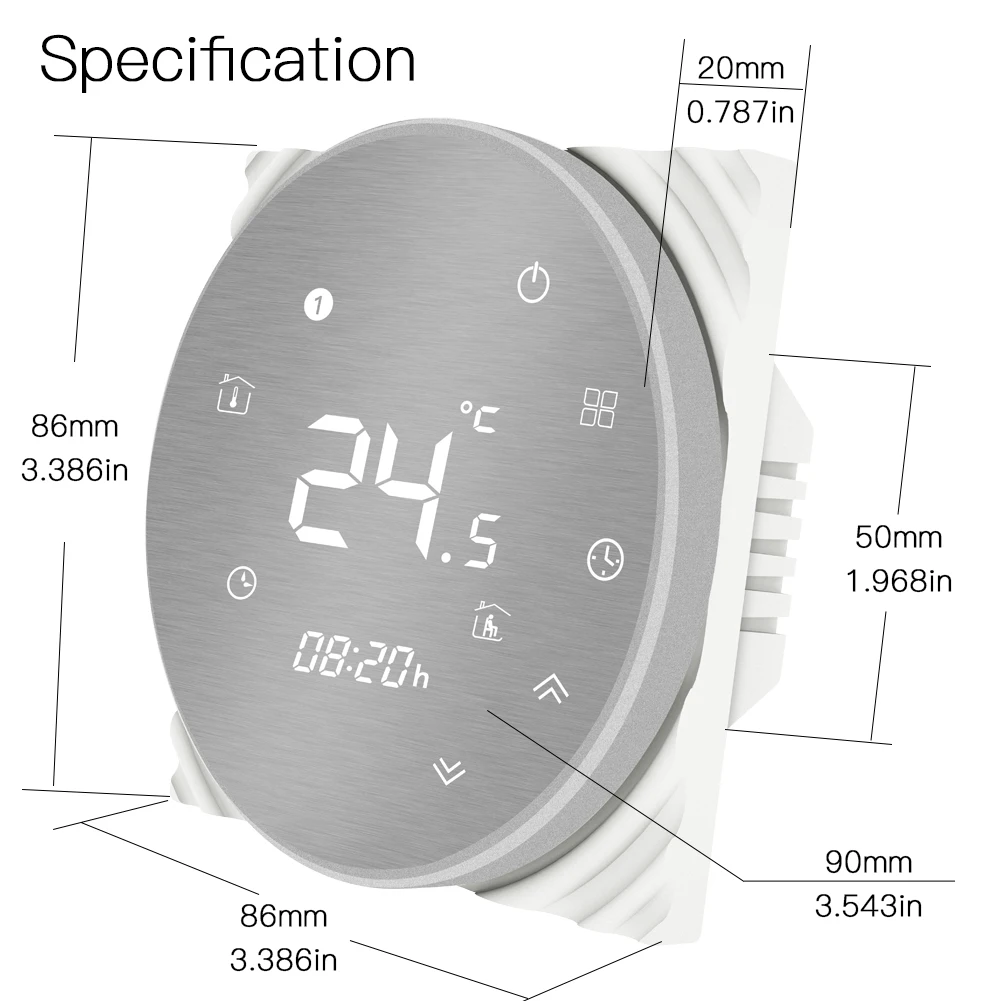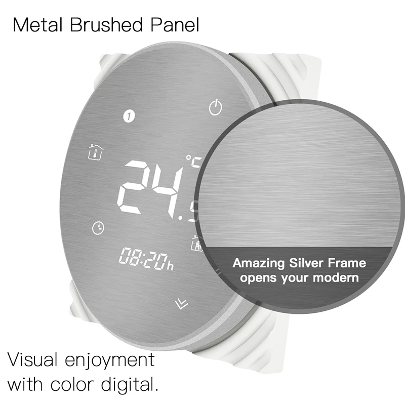 1. Функциональный нагрев водяного/газового котла: управление с помощью Wi-Fi включено для интеллектуального нагрева водяного/газового котла, обеспечивает максимальное и комплексное удобство вашей интеллектуальной жизни. (Примечание: текущая нагрузка составляет 5 а) 2. Металлическая матовая панель: потрясающая серебряная оправа и цветная цифровая рамка откроют вашу современную жизнь, а квадратный дисплей также поможет защитить ваши глаза. Термостат MOES нацелен на создание простых, человеческих и восхитительных ощущений для вашего дома, и этот цвет подходит для различных стилей украшения. 3. Совместимость с умным домом: работая с Alexa Google Home, термостат MOES обеспечивает наиболее хорошо используемую температуру бойлера для воды/газа, где бы вы ни находились, с помощью Голосового управления. 4. Дистанционное управление смартфоном: дистанционное управление температурой котла воды/газа для достижения повышенного комфорта через умное приложение, простое управление с помощью смартфонов в любом месте. 5. Программируемый 5 + 2: поддерживает полное автоматическое программирование или ручную настройку графика 5 + 2 дня в неделю по 6 этапов в день, что обеспечивает максимальное удобство и экономичность. Память данных при отключенном питании.