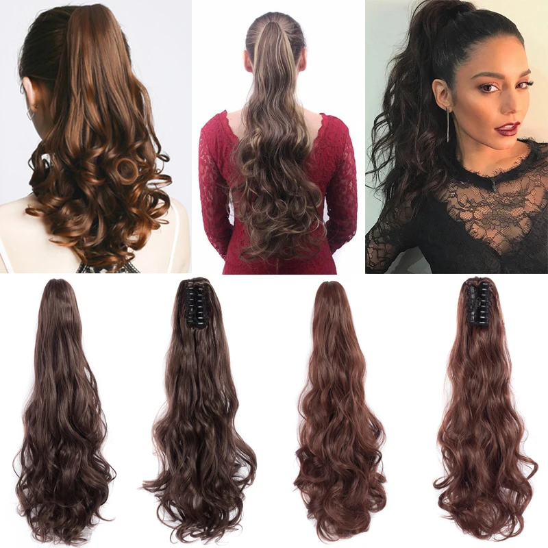 LISI GIRL 22 дюйма, длинные волнистые накладные волосы на заколке в виде конского хвоста, термостойкие синтетические натуральные волнистые искусственные волосы с конским хвостом