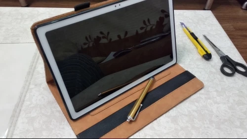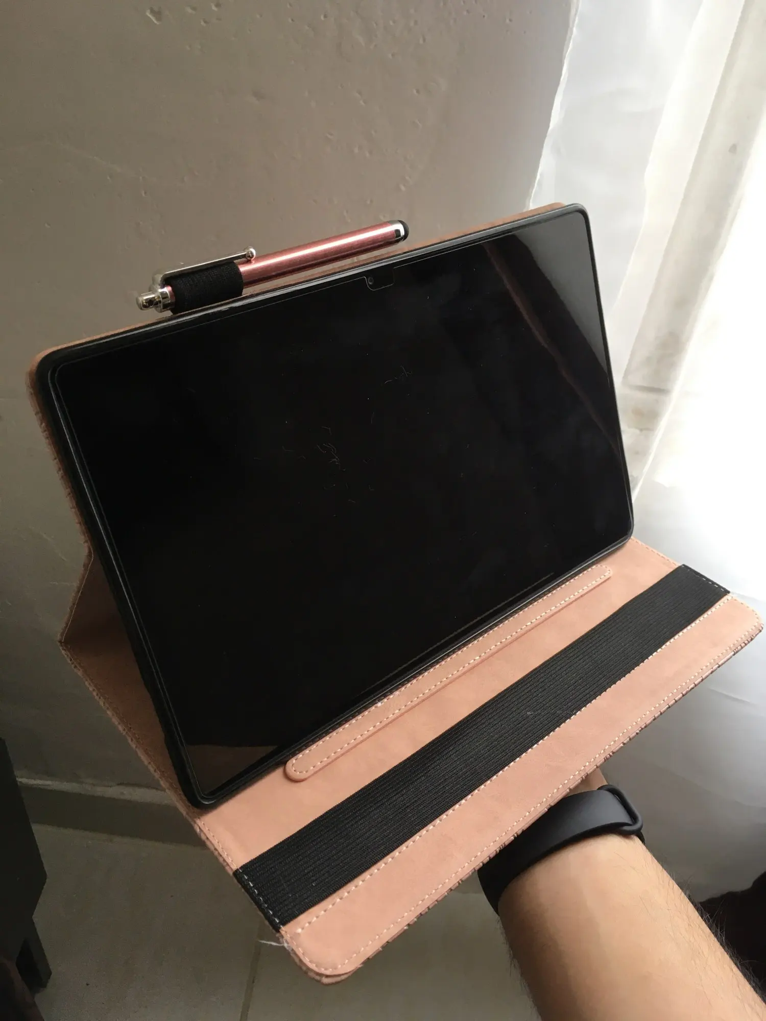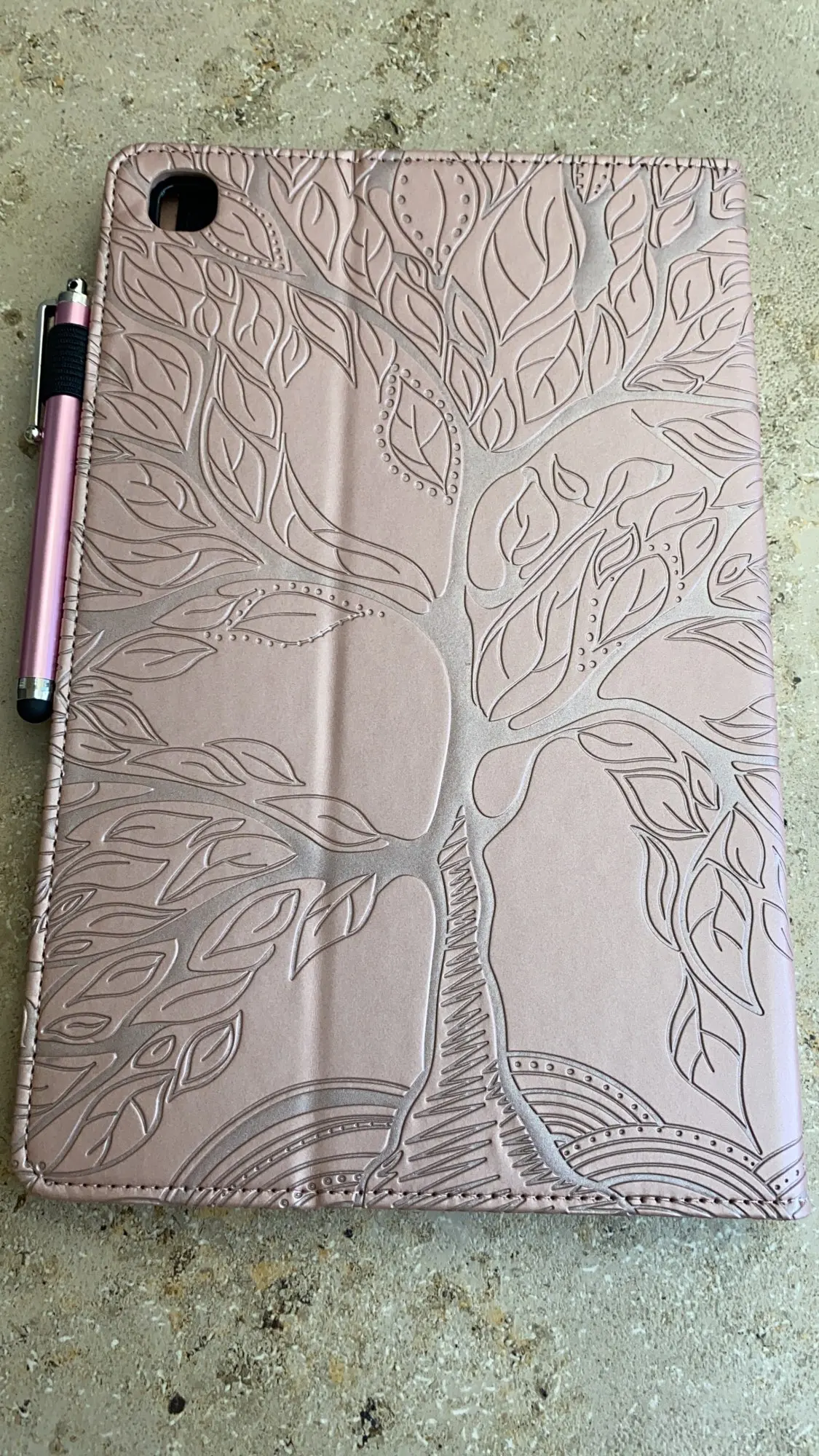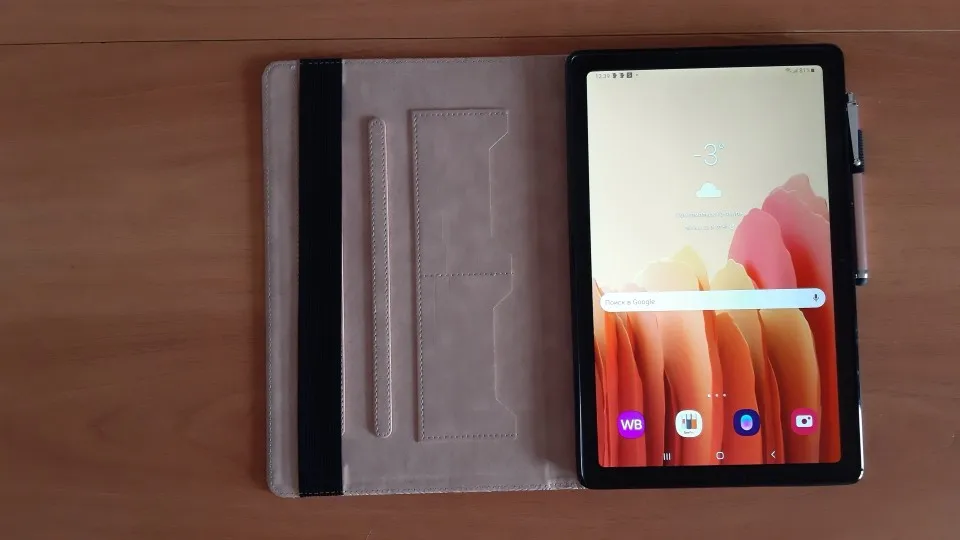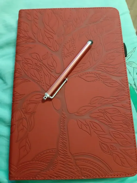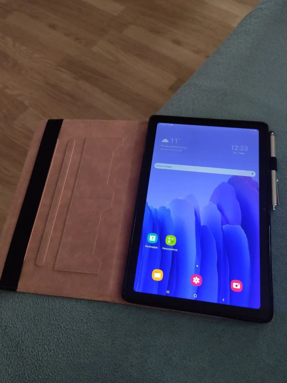 Отличный чехол для планшета Samsung Galaxy Tab A7. Сам планшет сел как влитой. Материал чехла - пенополиуретан, слегка мягкий снаружи. Тиснение на обложке замечательно выполнено, смотрится очень красиво. Стилуса в комплекте не было, продавец видимо пожадничал. Хорошая вещь, покупайте, не пожалеете. Доставка быстрая - 17 дней до Владимирской области, г. Муром. Трек везде отслеживался.