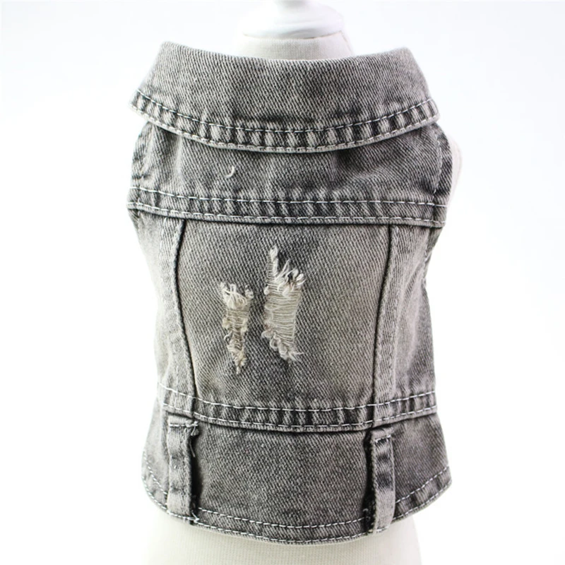 Джинсовая куртка для собак, джинсовая куртка, жилет для щенков с дырками, весенняя одежда