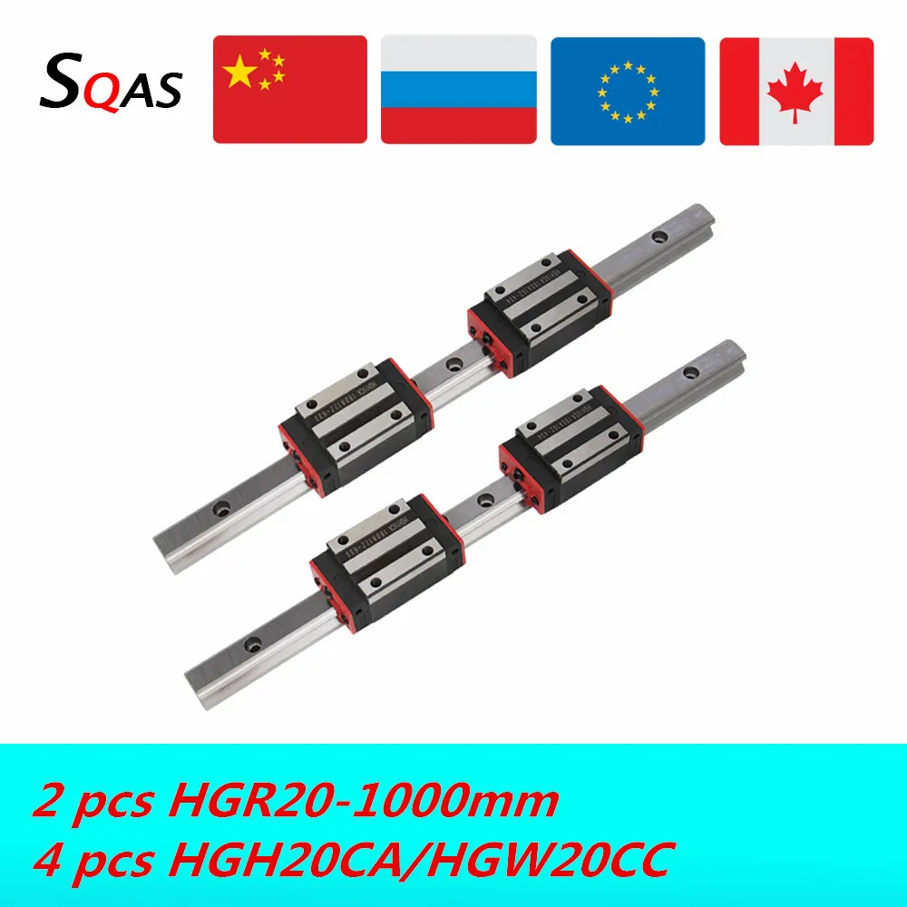 Быстрая доставка CNC квадратный направляющий линейный рельс 2 шт. HGR20 1000 мм линейная направляющая + 4 шт. HGH20CA HGW20CC каретки слайды блоки