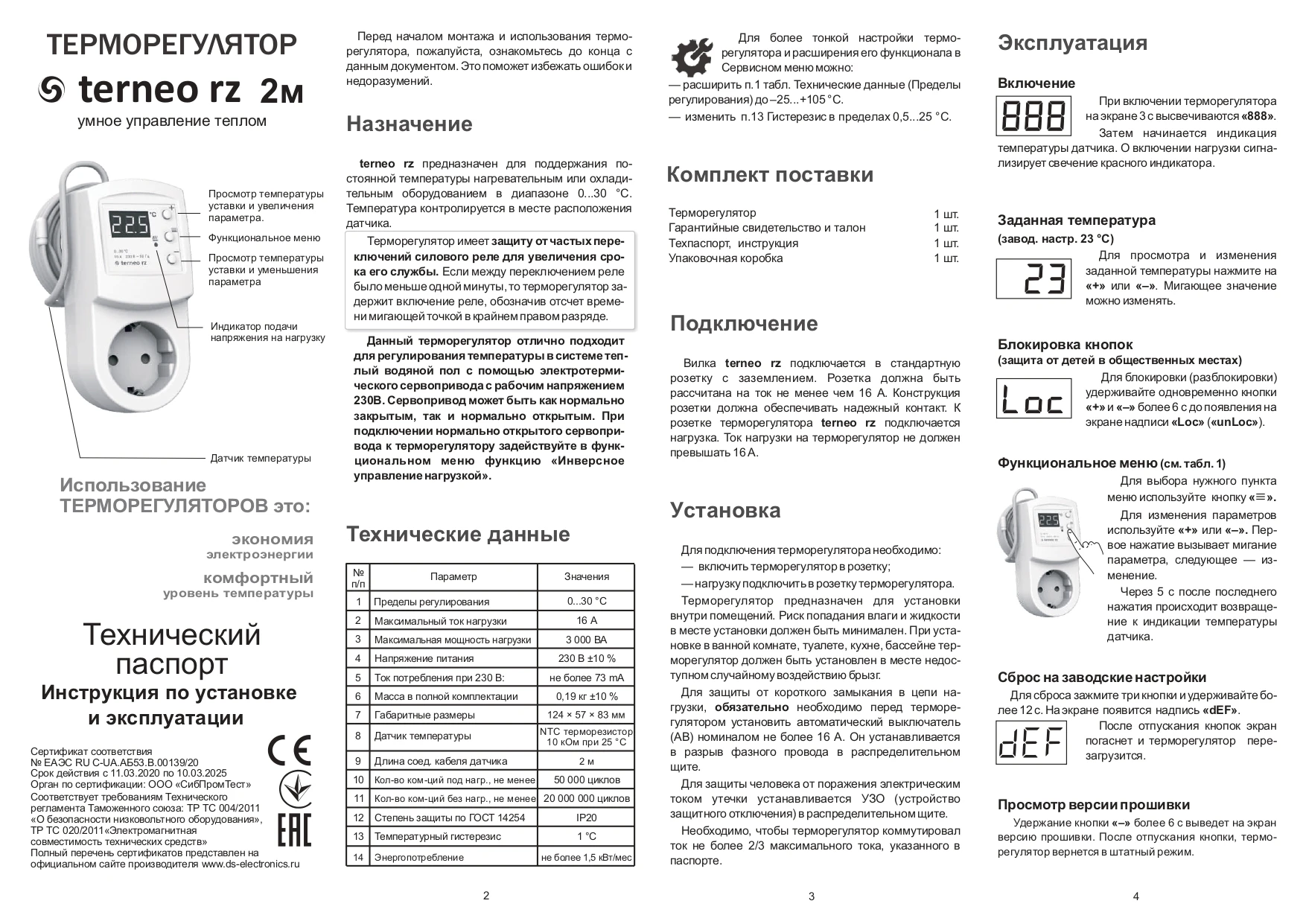 Терморегулятор terneo rz 2м — прямой контроль температуры воздуха