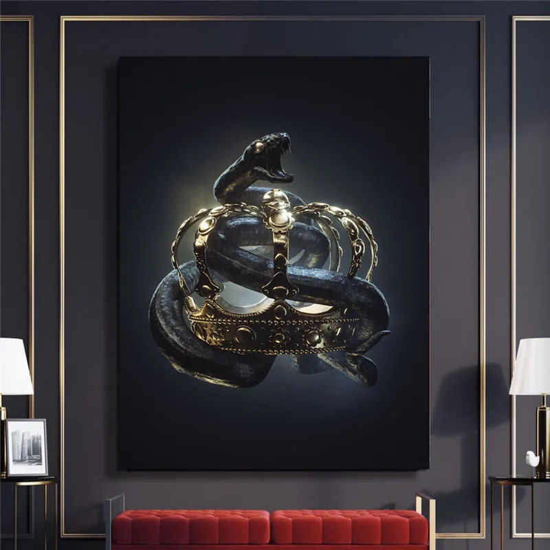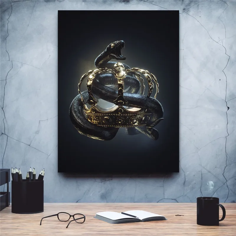 Настенный плакат HD с принтом короны и змеи, модульный холст черного и золотого цвета, 1 панель, крутые картины для украшения дома, гостиной