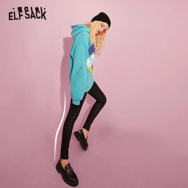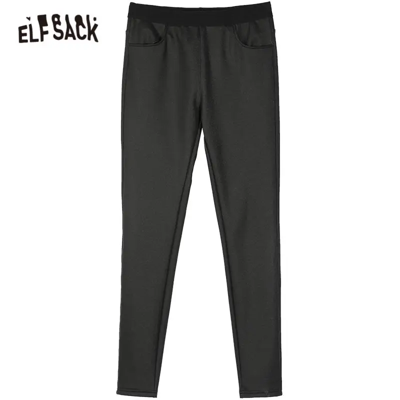 ELFSACKчерные однотонные минималистичные обтягивающие Женские Вязаные Гетры, осенние корейские женские брюки с высокой талией ELF 2020, базовые брюки на каждый день