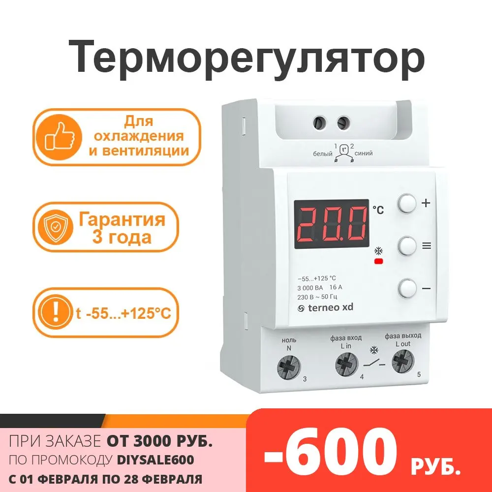 terneo xd: терморегулятор ледникового периодаУстройство предназначено для работы с системами охлаждения, кондиционирования, а также морозильным оборудованием. С помощью данных от температурного датчика терморегулятор может поддерживать температуру в диапазоне от -55 до +125 °С.Длительный срок эксплуатацииЕсли вам не нужно постоянно поддерживать конкретное значение температуры, тогда задайте ее диапазон. Это возможно благодаря гистерезису устройства от 0,5 до 25 °С. Поддержание температуры в некотором диапазоне уменьшит количество включений/выключений терморегулятора, что способствует продлению срока его службы.Удобство в управленииНастройка устройства происходит лишь тремя кнопками, а вся необходимая информация отображается на цифровом экране.Простой монтажТерморегулятор устанавливается в щиток на монтажную DIN-рейку шириной 35 мм. Все необходимые компоненты для контроля температуры уже в комплекте!Защита от перегреваЕсли температура внутри корпуса поднимется выше 80 °С, терморегулятор остановит свою работу. Для ее возобновления температура должна снизиться до 60 °С, и нужно нажать на любую кнопку для разблокировки устройства.Универсальный терморегуляторВы можете применять terneo xd и с цифровыми (DS18B20), и с аналоговыми (R10) датчиками. Для последних диапазон доступных температур составляет от -30 °С до +90 °С.