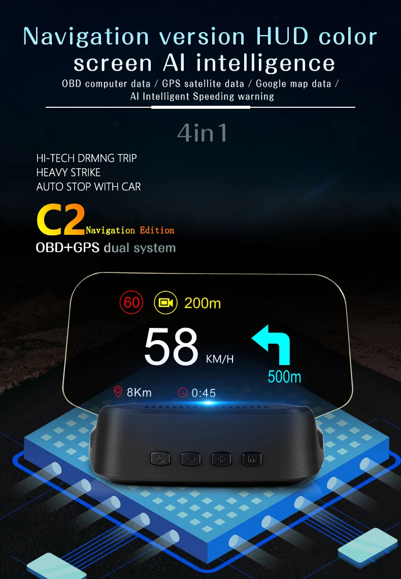 Проектор навигации общего назначения OBD HD, интеллектуальный проектор с функциями HUD Head-up GPS и OBD
