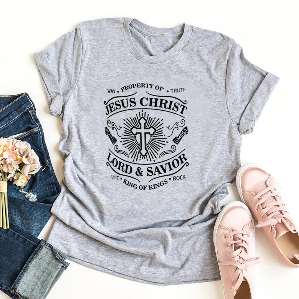 Женская футболка с принтом Иисуса Христа, Властелина спасательных христианцев, забавная футболка в стиле рок, одежда в стиле панк для девочек 90-х, модные топы с круглым вырезом