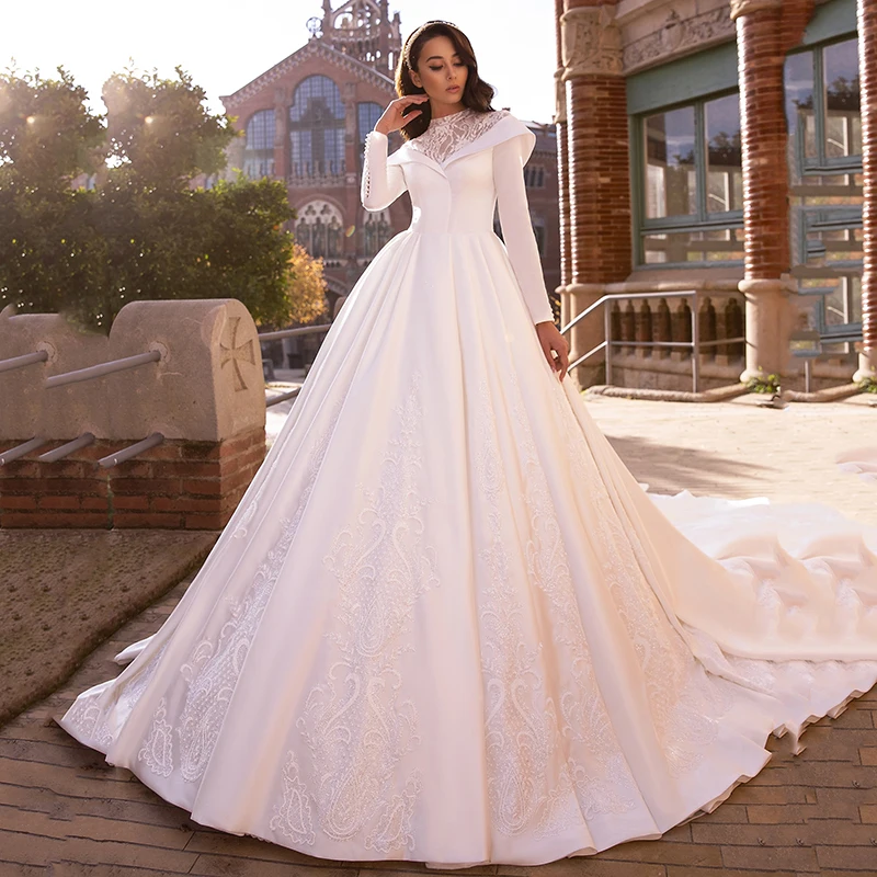 Smileven свадебное платье принцессы с длинным рукавом мусульманский с высокой шеей кружевное свадебное платье Vestido De Noiva размера плюс свадебные платья