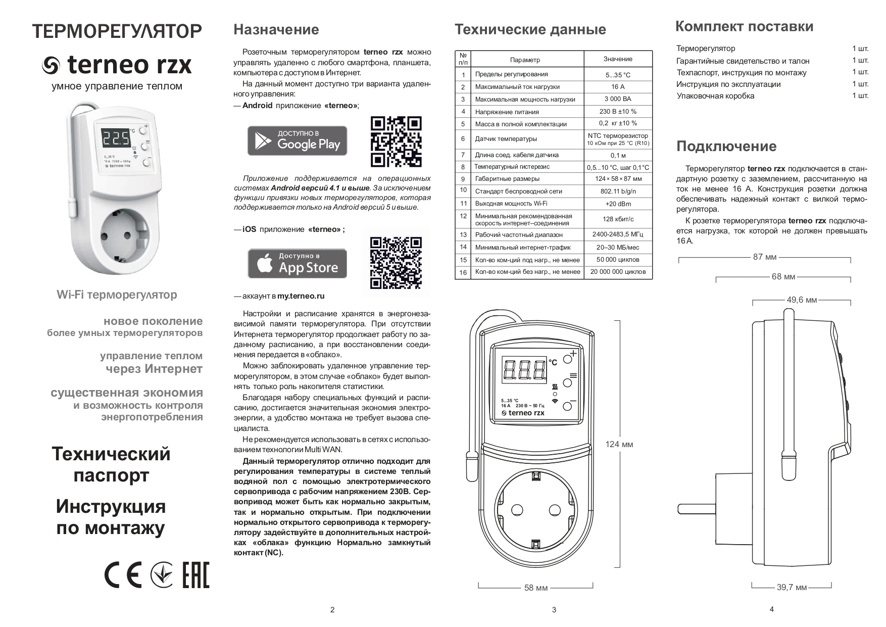 Терморегулятор WiFi в розетку terneo rzx, для инфракрасных панелей, термостат для систем обогрева и охлаждения, регулятор тепла