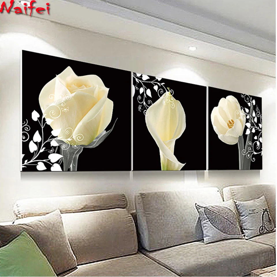 5d алмазная картина полностью Алмазная вышивка цветы Европейский Стиль Ресторан вышивка крестиком Триптих гостиная простой современный