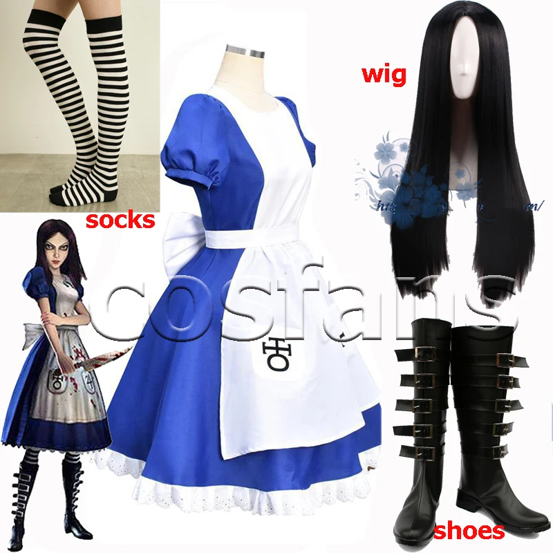 Косплей-костюм Элис из игры безумие возвращается, платье принцессы, платье горничной для Хэллоуина, платье-передник парик для женщин и девочек