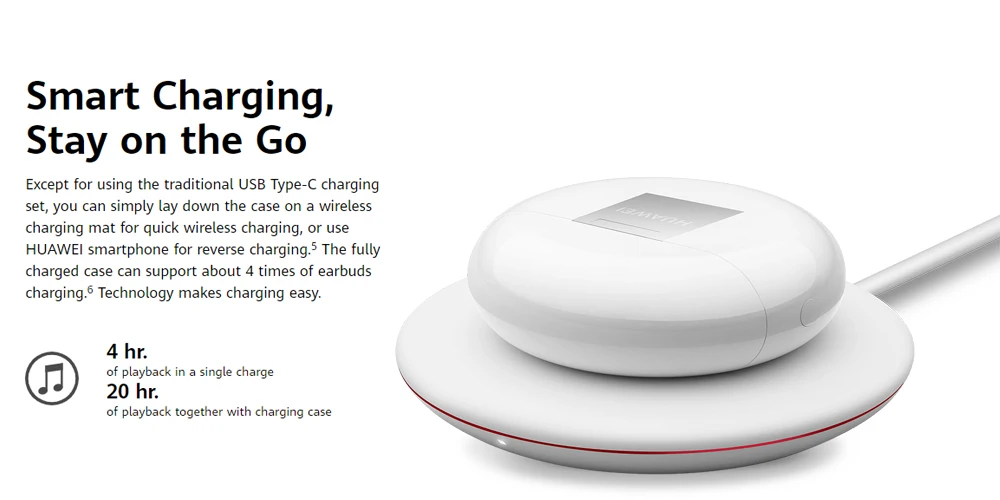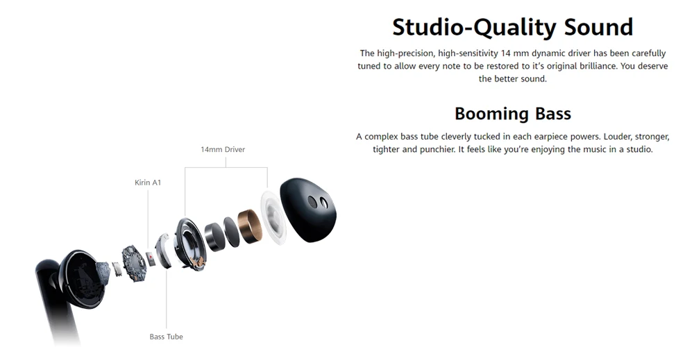 Чем отличается?Версия с проводной зарядкойЗарядное устройство: поддерживает только проводную зарядкуВерсия беспроводной зарядкиЗарядное устройство: Поддержка проводной зарядки и беспроводной зарядки***************************************************************************************Та же Характеристика: Размер:41,5x20,4x17,8 мм (один наушник); ⏰ 60,9x21,8 мм (зарядный чехол) Вес:4,5g (один наушник) ;48g (зарядный чехол)* Размер, вес и характеристики товара приведены для справки. Фактические размеры и характеристики каждого индивидуального комплекта могут отличаться. Зарядка:Чехол для зарядки-около 1 часа (Проводная зарядка)Наушники-около 1 часа (в зарядном чехле)* Данные получены по тестам в лаборатории HUAWEI и предназначены только для справки. Питание30 мА * ч (мин.) (один наушник)410 мА * ч (мин.) (зарядный чехол)* Типичное значение. Фактическая стоимость может отличаться.Указана Номинальная емкость аккумулятора. Фактическая емкость аккумулятора конкретного устройства может отличаться вверх или вниз от номинального значения. Чип: HUAWEI Kirin A1 Драйвер: динамик 14,2 мм Подключение: Bluetooth 5,1 Время воспроизведения аудио4 часа воспроизведения после одной зарядки20 часов воспроизведения с зарядным чехлом ** Данные получены по тестам в лаборатории HUAWEI и предназначены только для справки. Управление: управление двойным нажатием Порт зарядкиПроводной: USB Type-C (5V 1.2A 6W)Беспроводная связь: стандарт Qi (2 Вт) ** Данные получены по тестам в лаборатории HUAWEI и предназначены только для справки. Подавление шума: технология активного шумоподавления Какая коробка?Наушники * 1Зарядный чехол * 1Зарядный кабель USB Type-C * 1Быстрый старт * 1Руководство по безопасности * 1Гарантийный талон * 1