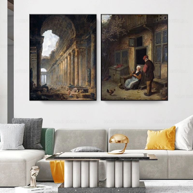 Настенная Картина на холсте с изображением старых храмов Хьюберта Роберта, классические художественные репродукции, принты, знаменитый художественный Декор для дома и офиса