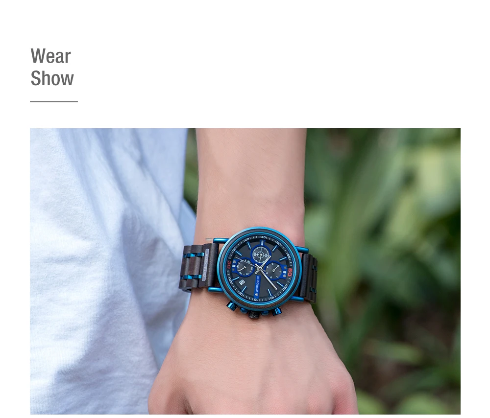 Новые мужские синие часы BOBO BIRD, деревянные Автоматические наручные часы с датой, лучший бренд, роскошные модные светящиеся стрелки, хронограф, подарочная коробка