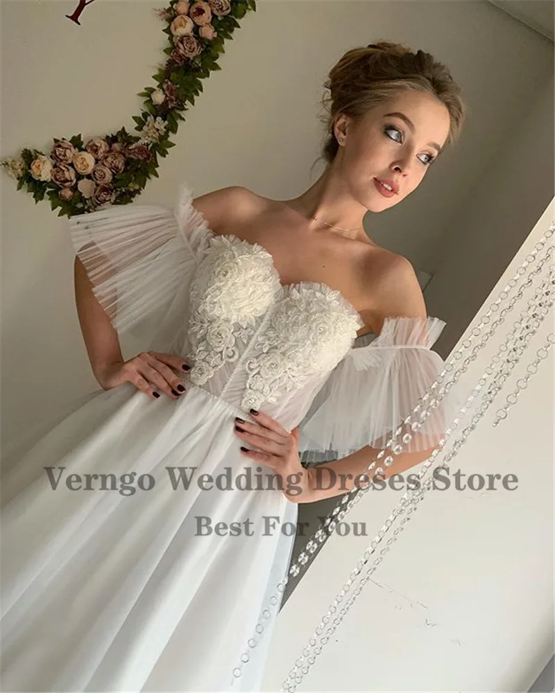 Платье Свадебное ТРАПЕЦИЕВИДНОЕ с открытыми плечами и рукавами, на заказ