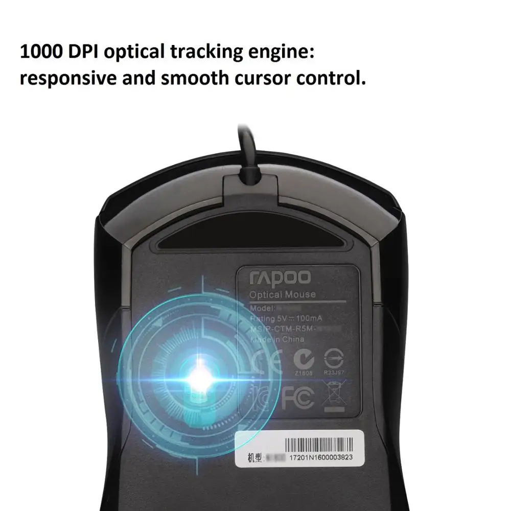 Бренд Rapoo 3-Кнопка Проводной USB оптическая Тихая мышь Мышь, компьютерной мыши с 1000 Точек на дюйм, совместимый с ПК, Mac, настольных компьютеров и ноутбуков
