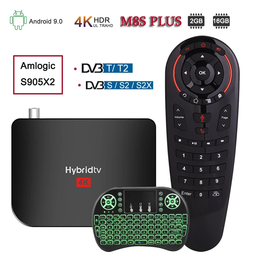 Новейшая Смарт ТВ-приставка M8S PLUS DVB 4K Android 9,0 DVB-T2T DVB-S2S, спутниковый комбинированный Amlogic S905X2, четырехъядерный Wi-Fi, ТВ-приставка