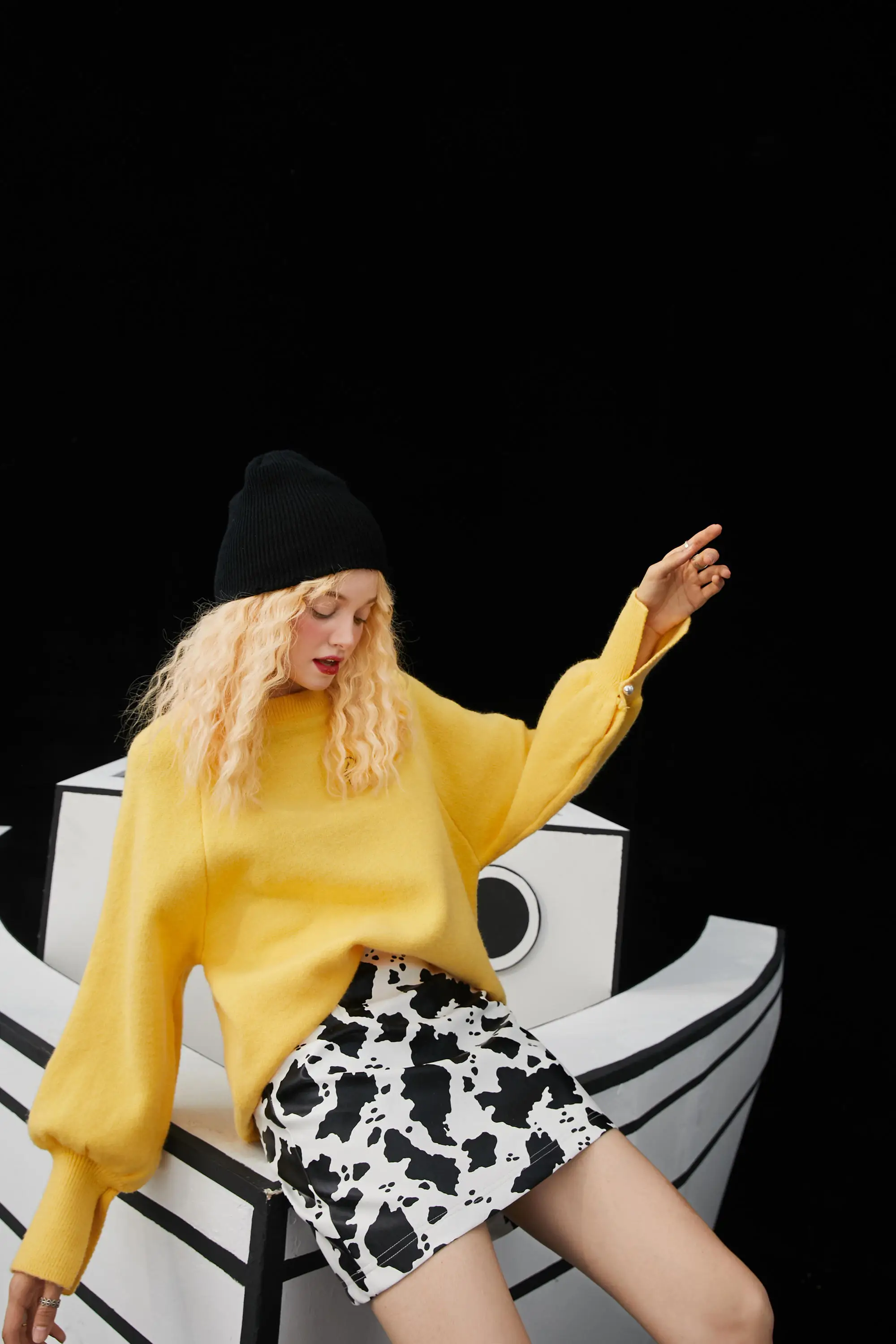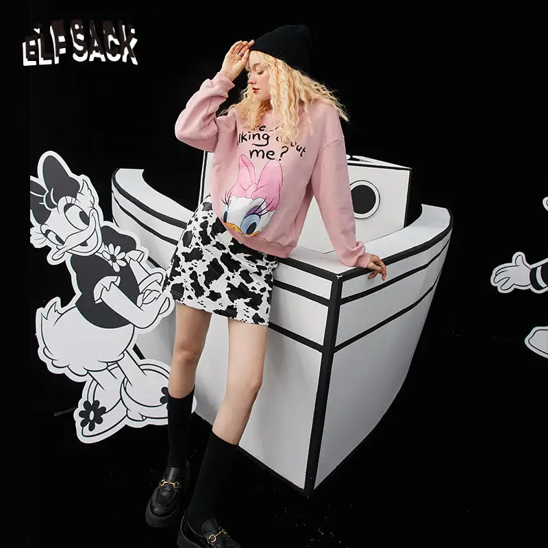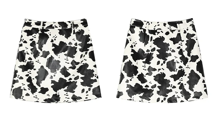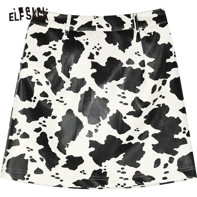 Женская Повседневная мини-юбка ELFSACK с высокой талией и принтом коровы, осенняя винтажная пикантная Дамская кожаная юбка в Корейском стиле, 2020