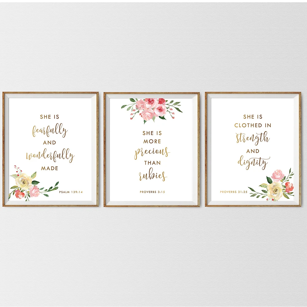 Библия, тексты Псалом 139:14, христианская детская настенная Картина на холсте, картины, Акварельные Цветы, принты, постер, декор для маленьких девочек