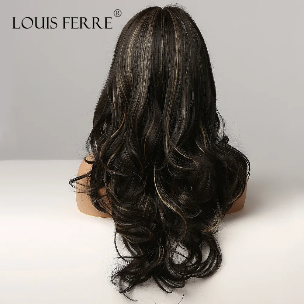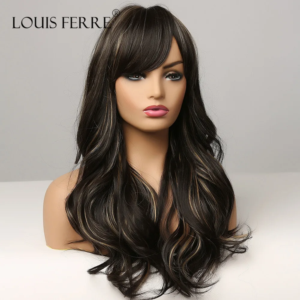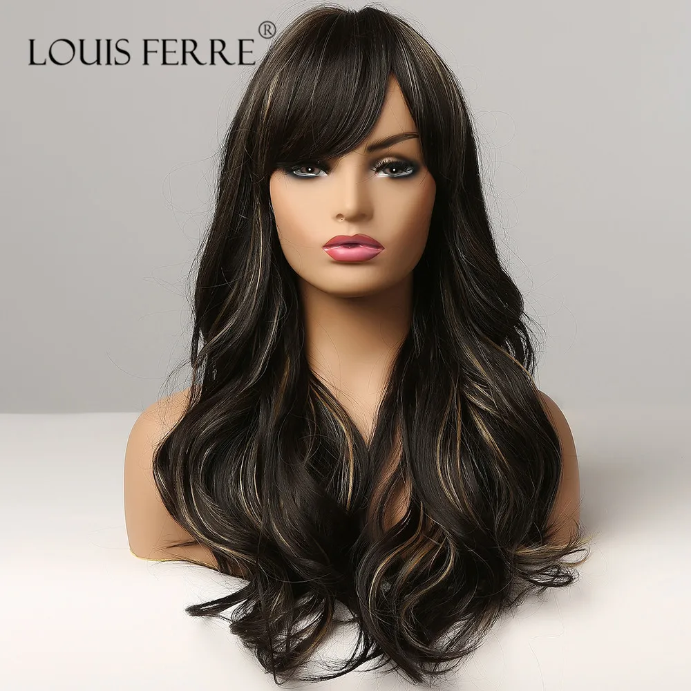 Парик LOUIS FERRE для женщин, черные, темно-коричневые и светлые, длинные волнистые, для косплея, повседневный синтетический, с челкой, термостойкий