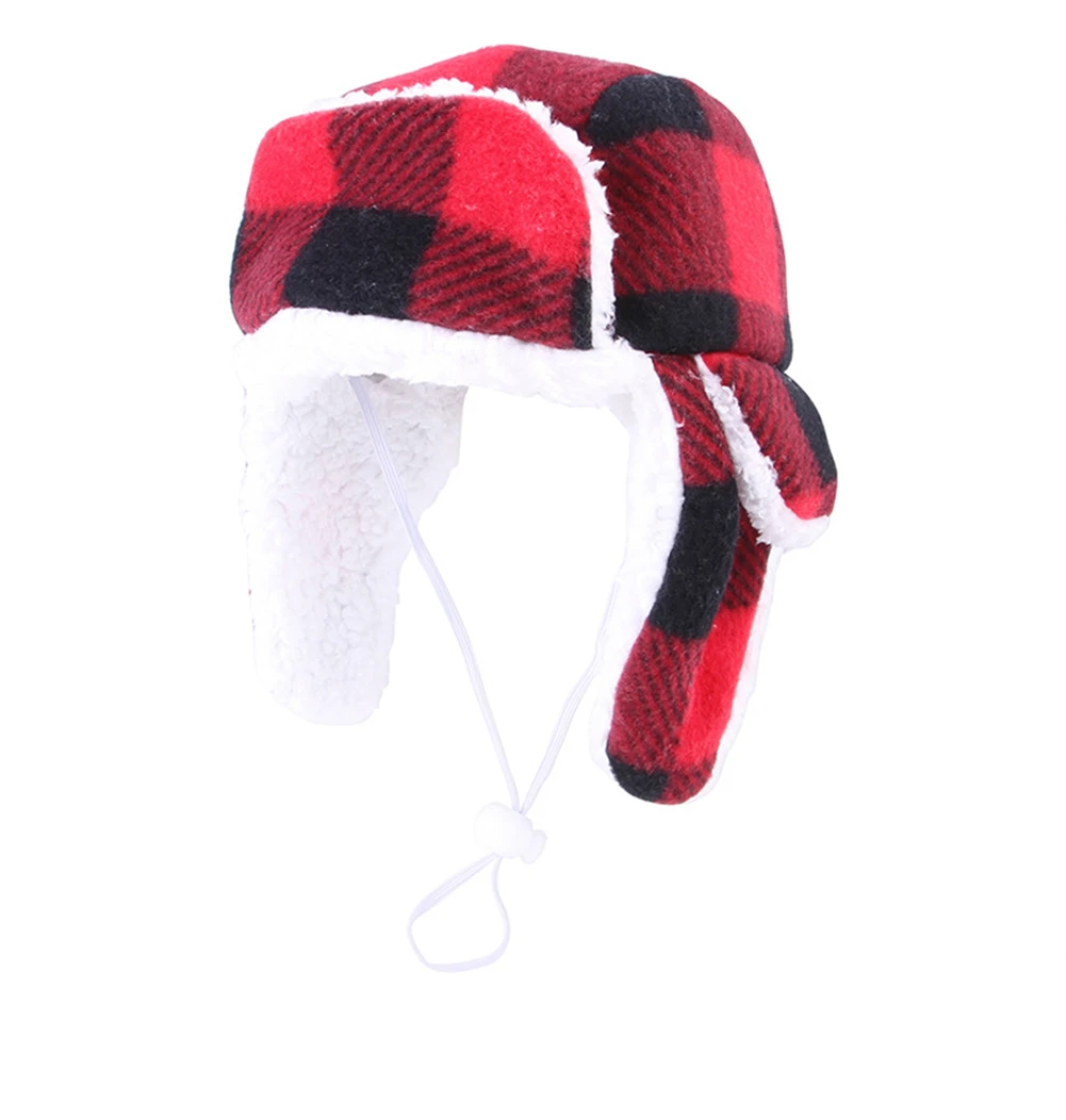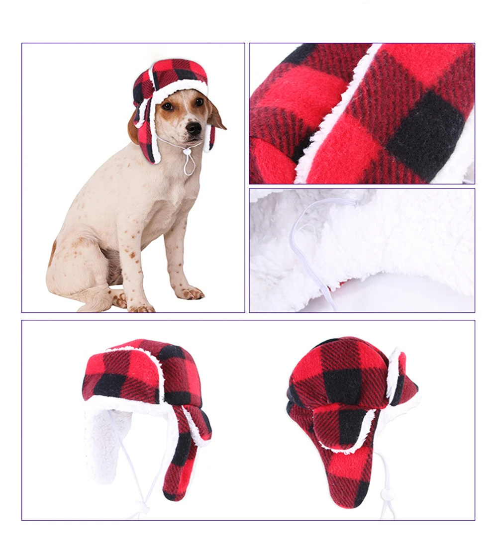 Шляпа для животных в клетку осень-зима теплый плюшевый берет для щенка шапка большая собака прогулочная ветрозащитные шляпы Французский бульдог головной убор для домашнего питомца