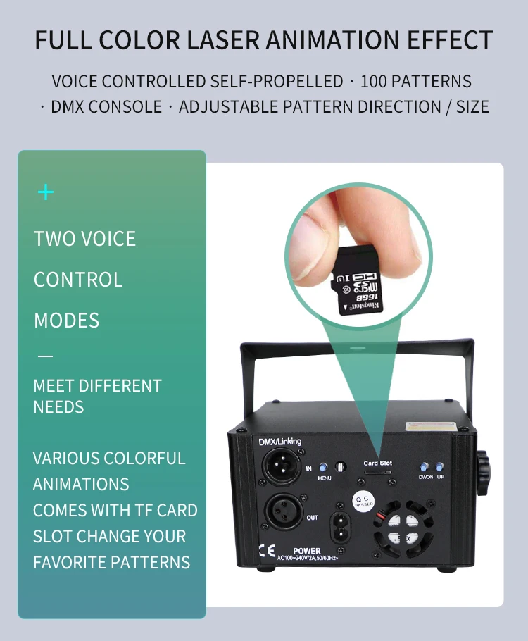 FAQ В1: Клиент: Что мне делать, если мы не получим товар в оговоренный срок? Магазин: мы полностью вам компенсируем. В2: Клиент: Что мне делать? Если он поврежден во время транспортировки? Магазин: во-первых, эта вероятность очень низкая, а во-вторых, мы полностью компенсируем Вам, если вы действительно столкнулись с повреждениями во время транспортировки, будьте уверены. В3: Клиент: вы можете сделать наши слова или узоры? Магазин: Да, мы можем В4: Клиент: Могу ли я сделать наш собственный логотип, слова или узоры? Магазин: Да, вы можете, пожалуйста, свяжитесь с нами для получения программного обеспечения и инструкций. Название: анимационный лазерный свет с TF-картой Модель: YSH Источник питания: AC110 ~ 240 В, 50 Гц/160 Гц Цвет: белый/красный/зеленый/синий/желто-розовый/голубой Мощность: 500 мВт Режим управления: DMX-512/Голосовое управление 1 самоходный Система сканирования: Высокоточный шаговый двигатель Канал управления: 14 DMX-512 сигнальных каналов Размер внутренней коробки: 19,9*11,5*20,6 см Вес внутренней коробки: 1,15 кг Если у вас есть какие-либо вопросы, не стесняйтесь оставлять нам сообщение, и мы ответим Вам в течение 24 часов.