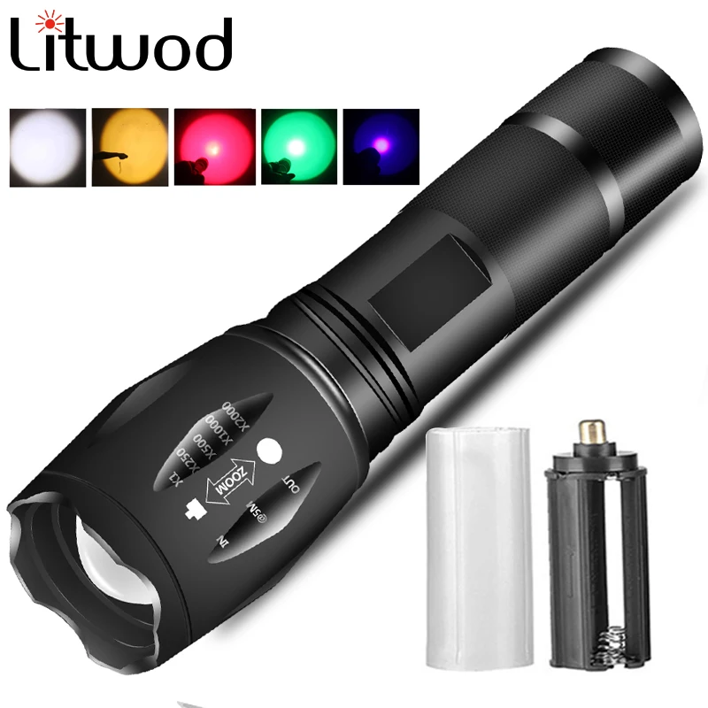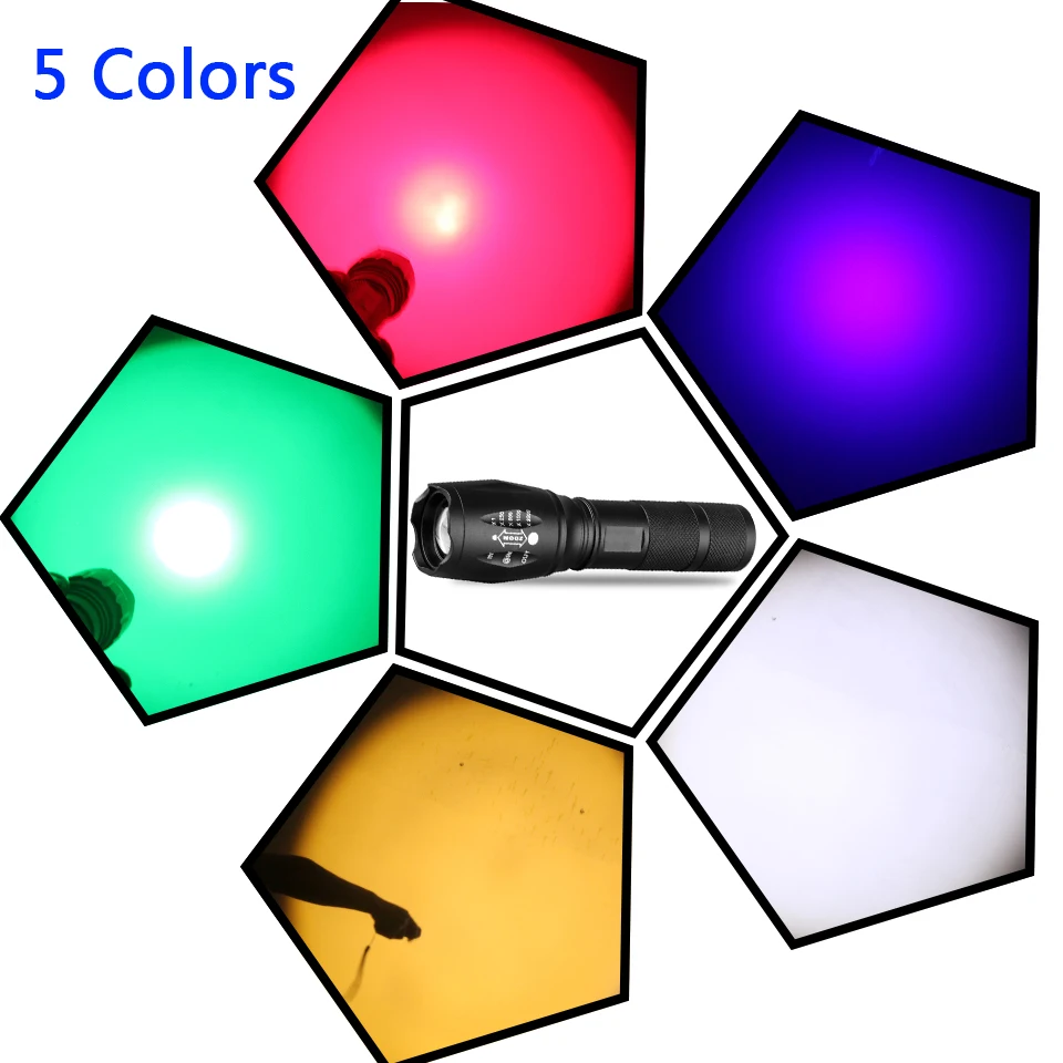 XM-L2 U3 T6 тактический светодиодный фонарик масштабируемый водонепроницаемый фонарь белый желтый красный зеленый синий 6 цветов УФ свет фонарь для кемпинга