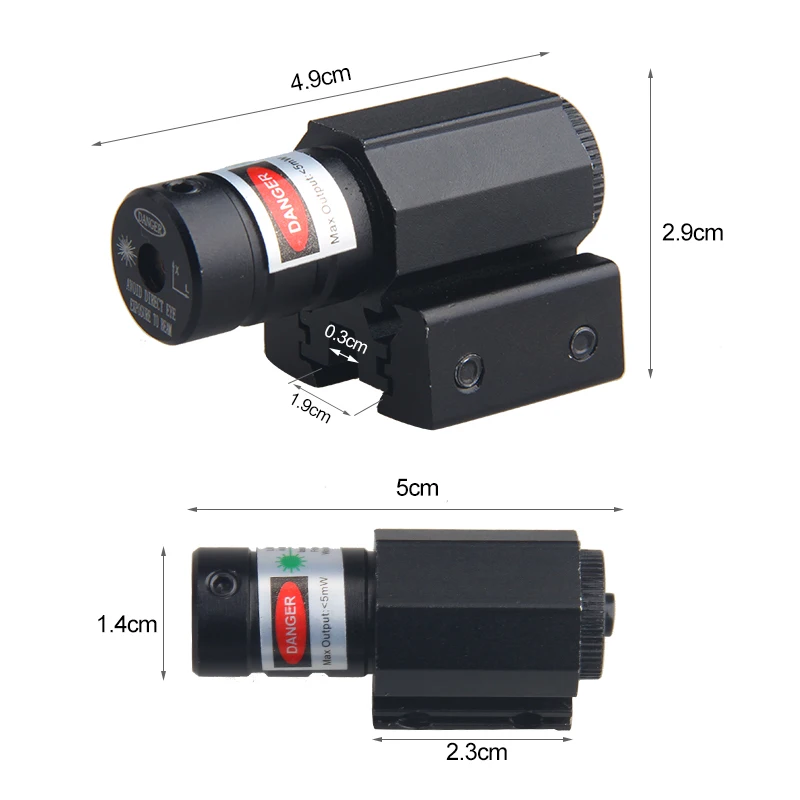 Четкий и супер яркий лазерный точечный прицел Крепежная защелка (11 мм/21 мм переключаемая) надежно фиксирует лазерный прицел для оружия Ветровка и высота могут регулироваться шестигранным гаечным ключом Прямая установка с зажимом, быстрый выпуск Подходит для быстрого прицеливания и съемки неподвижных и движущихся объектов Мощность: <1 мВт Металлический корпус Длина волны: Красный 635 нм ~ 655 нм Лазерный диапазон: 50 м ~ 100 м Размер трубки: 17 мм Размер: около 57 мм * 11 мм * 29 мм Вес нетто: 57 г Вес: 67 г Подходит для большинства 11 мм/21 мм тактического оружия с или без рельсов Примечание: Продукт класса IIIA, Избегайте прямого воздействия лазерного луча на глаза Никогда не направляйте лазерный луч на человека