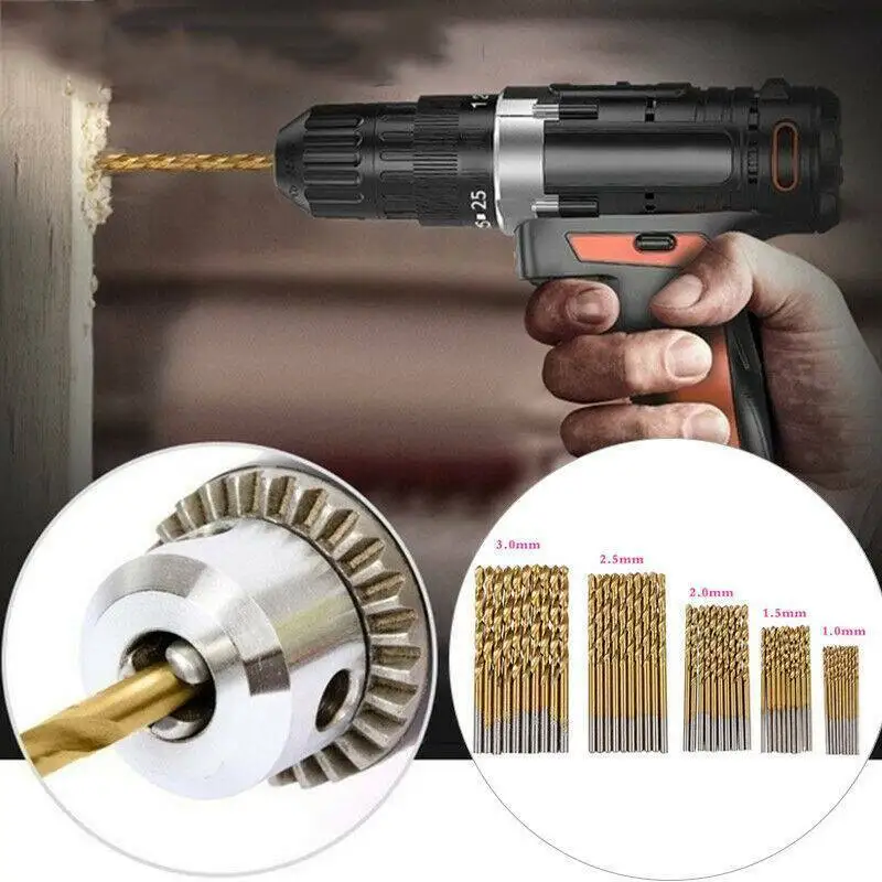 50 шт. набор спиральных сверл высокоскоростное стальное сверло с ти...