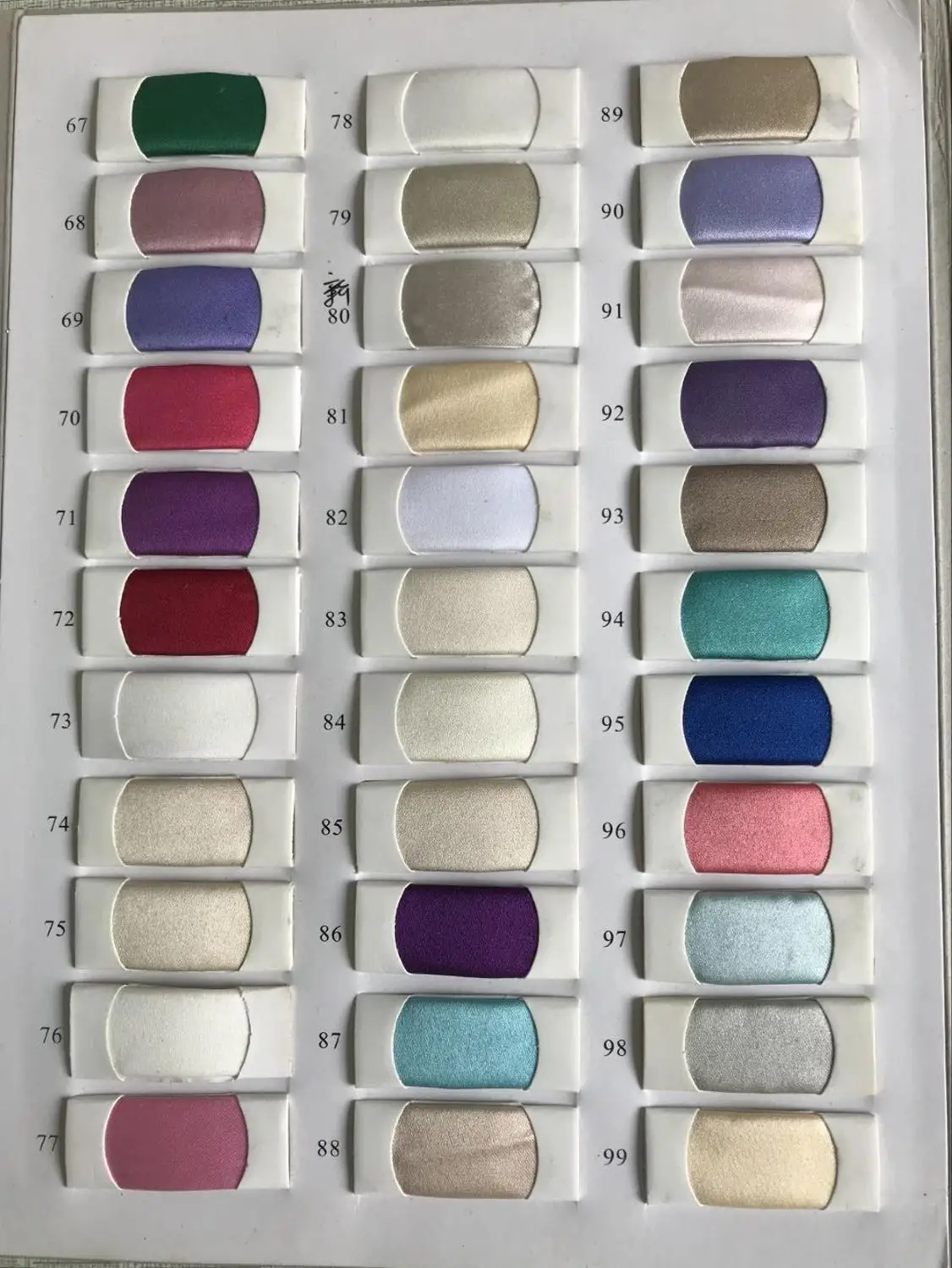 Таблица цветов (мы можем бесплатно изготовить на заказ по любому цветному номеру)