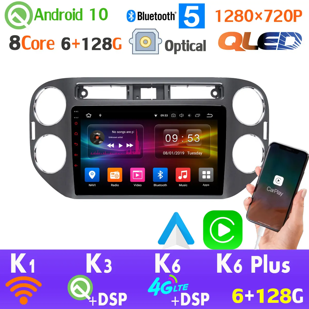 6G + 128G Android 10 QLED 1280*720P для Volkswagen VW Tiguan 2010-2...