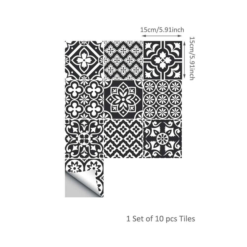 10 шт.партия черные, белые водостойкие наклейки на стены, анти-масло, самостоятельное клейкие плитки, украшение для кухни, ванной, настенное искусство 15 см20 см
