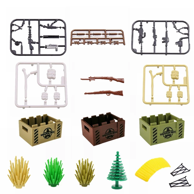 Военная серия игрушек для детей, аксессуары, модели, деревья, оружейные коробки, оружейные игрушки, винтовка милитари, совместимые модели строительных блоков