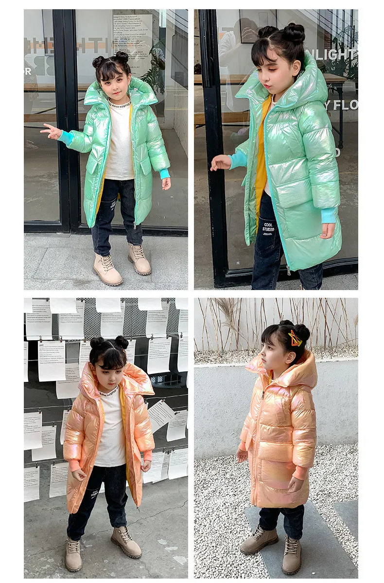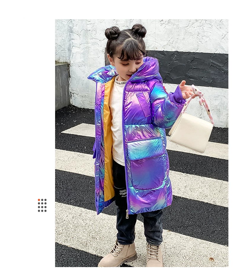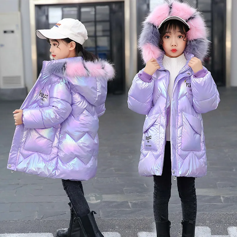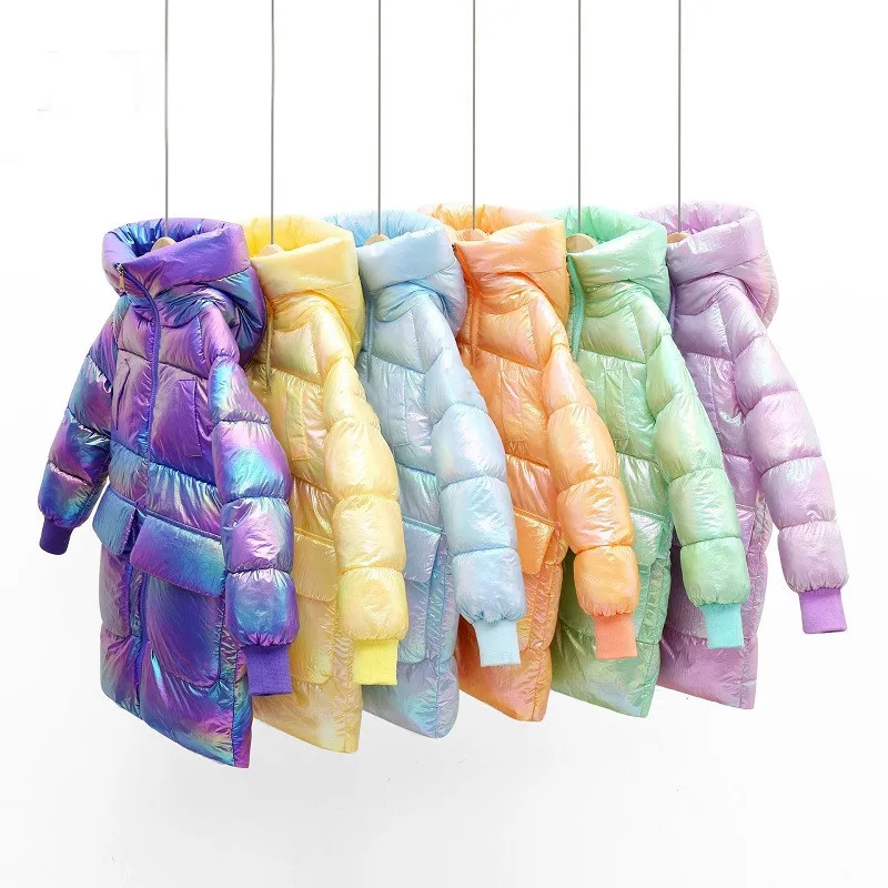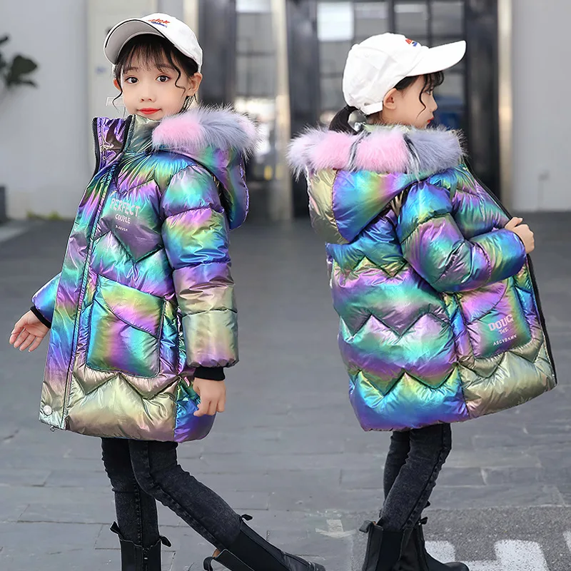 Новогодняя Детская зимняя куртка для девочек, яркое Радужное плотное зимнее пальто для девочек велюровые зимние куртки с капюшоном для девочек верхняя одежда для 12 лет
