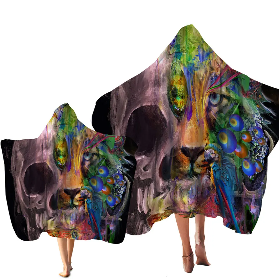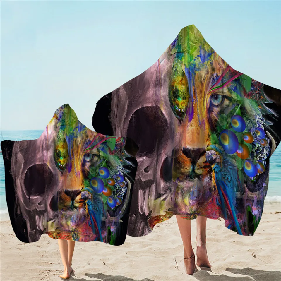 Полотенце с капюшоном, из микрофибры, с черепом, с капюшоном, в готическом стиле, пригодное для носки пляжное одеяло