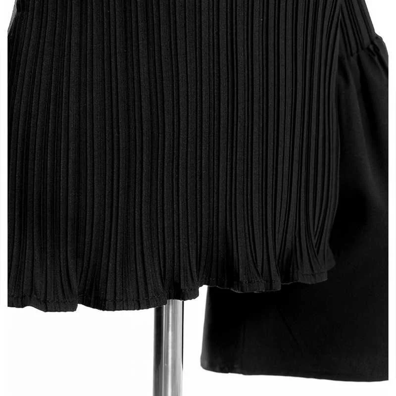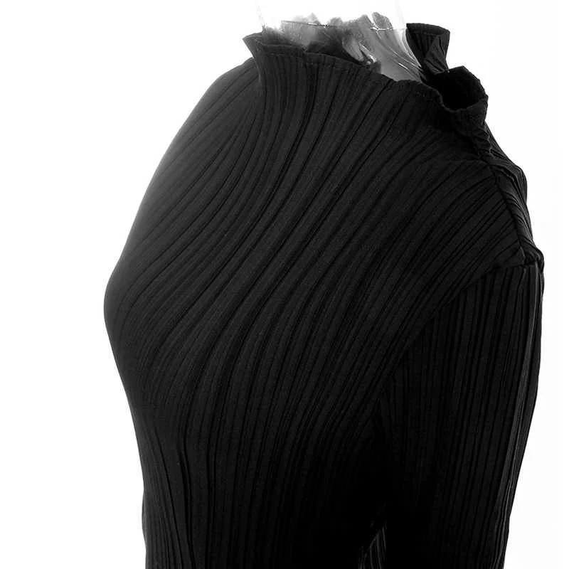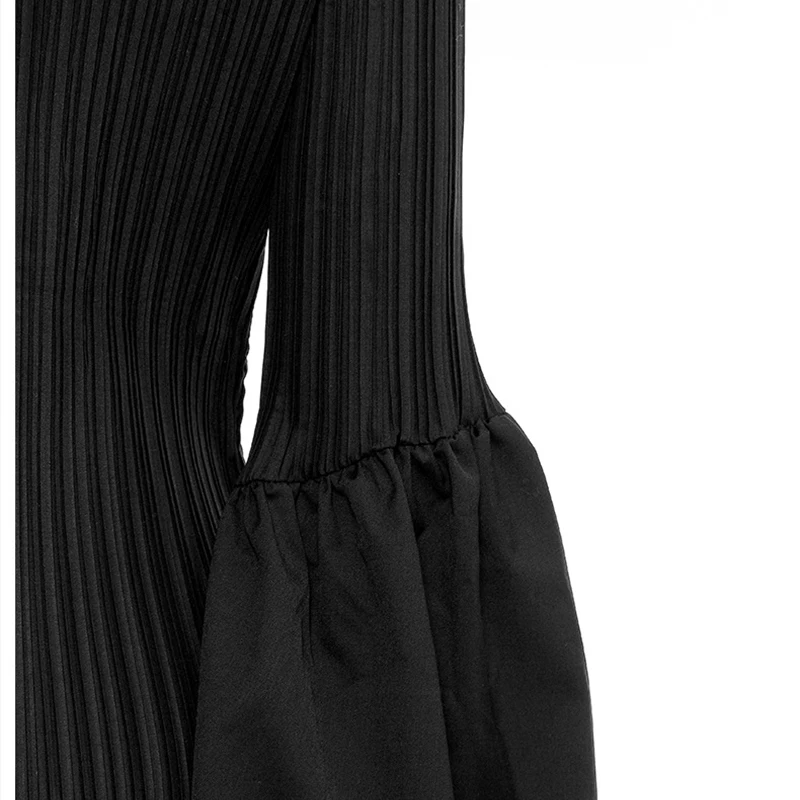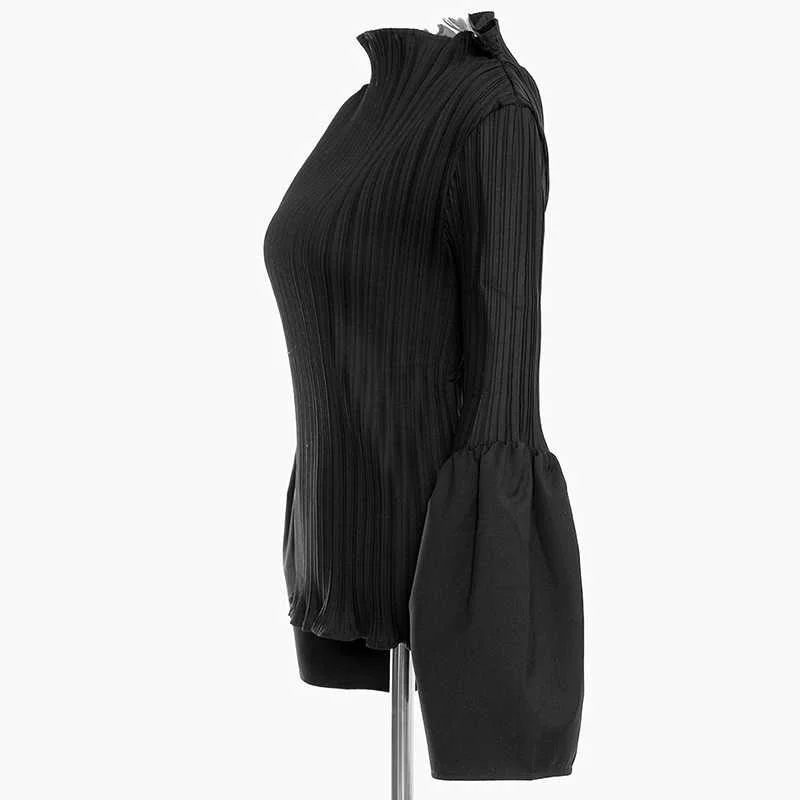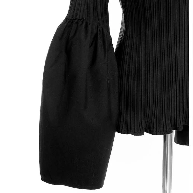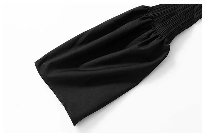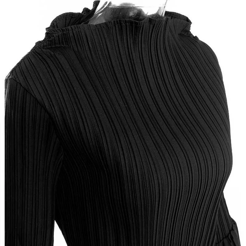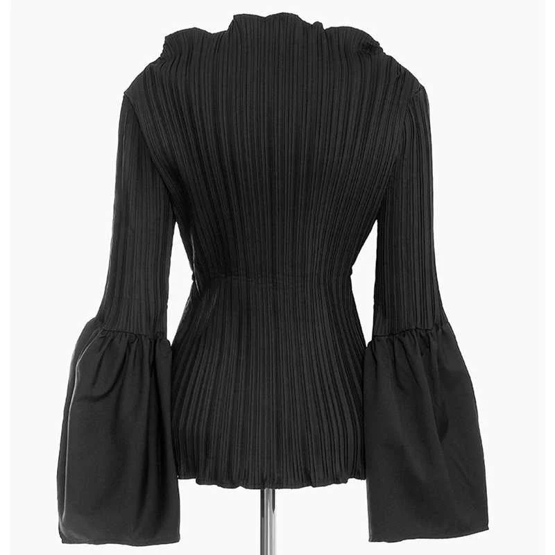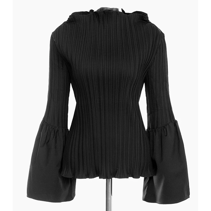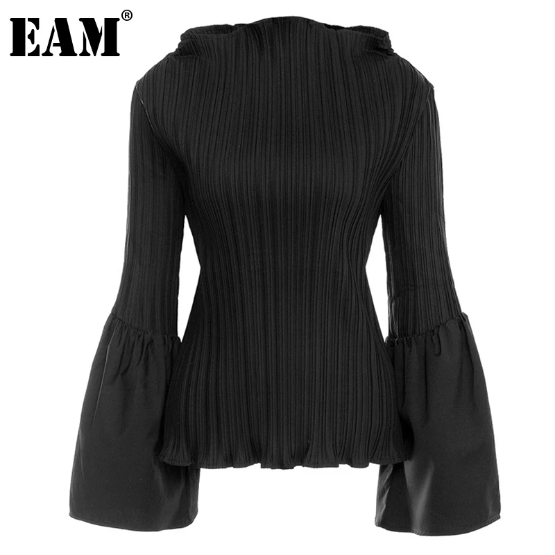 EAM женская черная плиссированная футболка большого размера, новая модная футболка с круглым вырезом и длинными расклешенными рукавами, весна-осень 2022 1DD0022