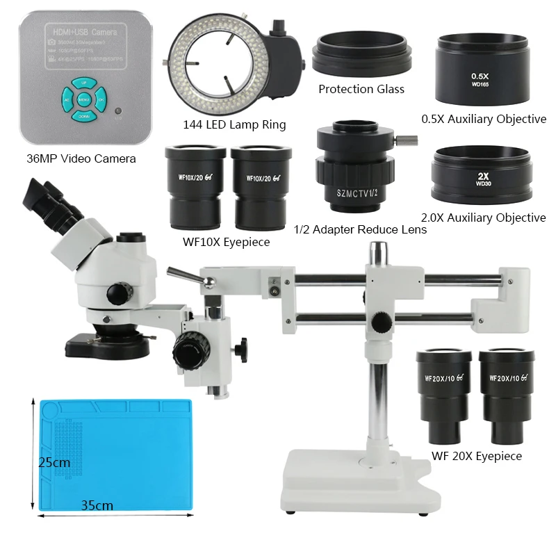 Тринокулярный стереомикроскоп с зумом Simul Focal 3.5X-90X, 2K, 36 МП, электронный цифровой микроскоп с камерой