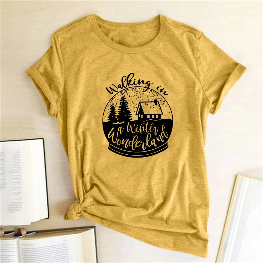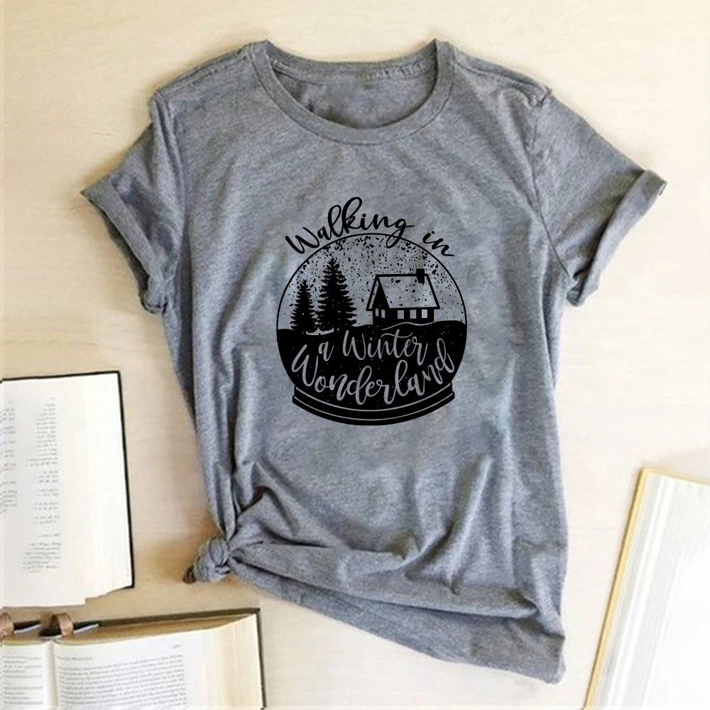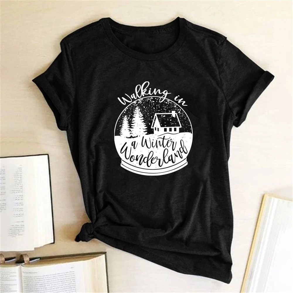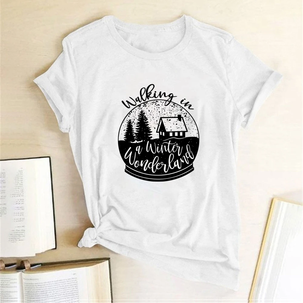 2020 Рождественская женская футболка Прогулка зимой с принтом страны чудес Симпатичные женские футболки Рождественский подарок футболки Топы Одежда