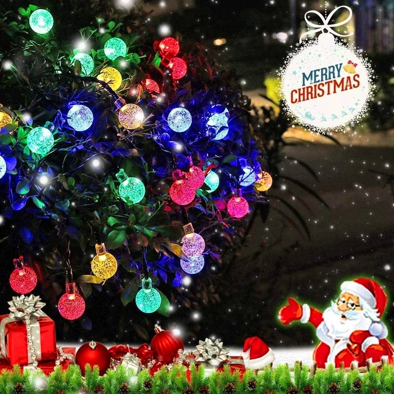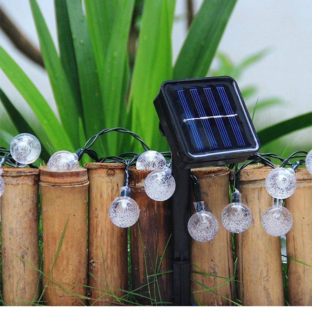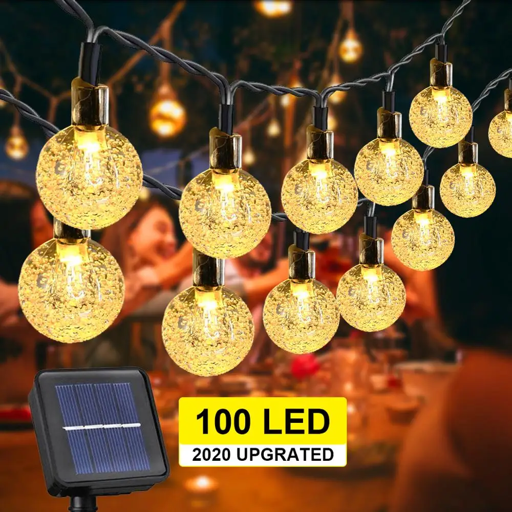 гирлянда уличная,Уличные светодиодные гирлянды на солнечной батарее с хрустальными шариками, водонепроницаемая лампа для внутреннего дворика для свадебной вечеринки, сада, Рождественское украшение, 5 м, 12 м