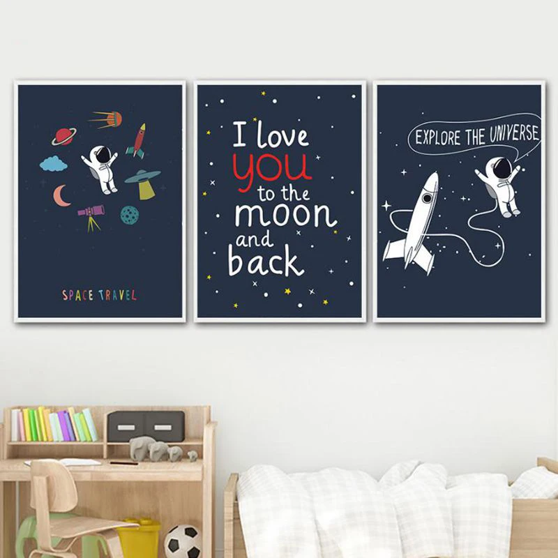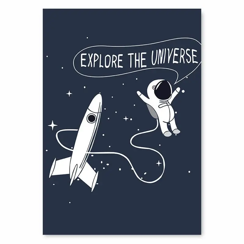 Абстрактные астронавты распылителя изучают космический пейзаж английские буквы Картина на холсте Настенная картина плакат украшение комнаты