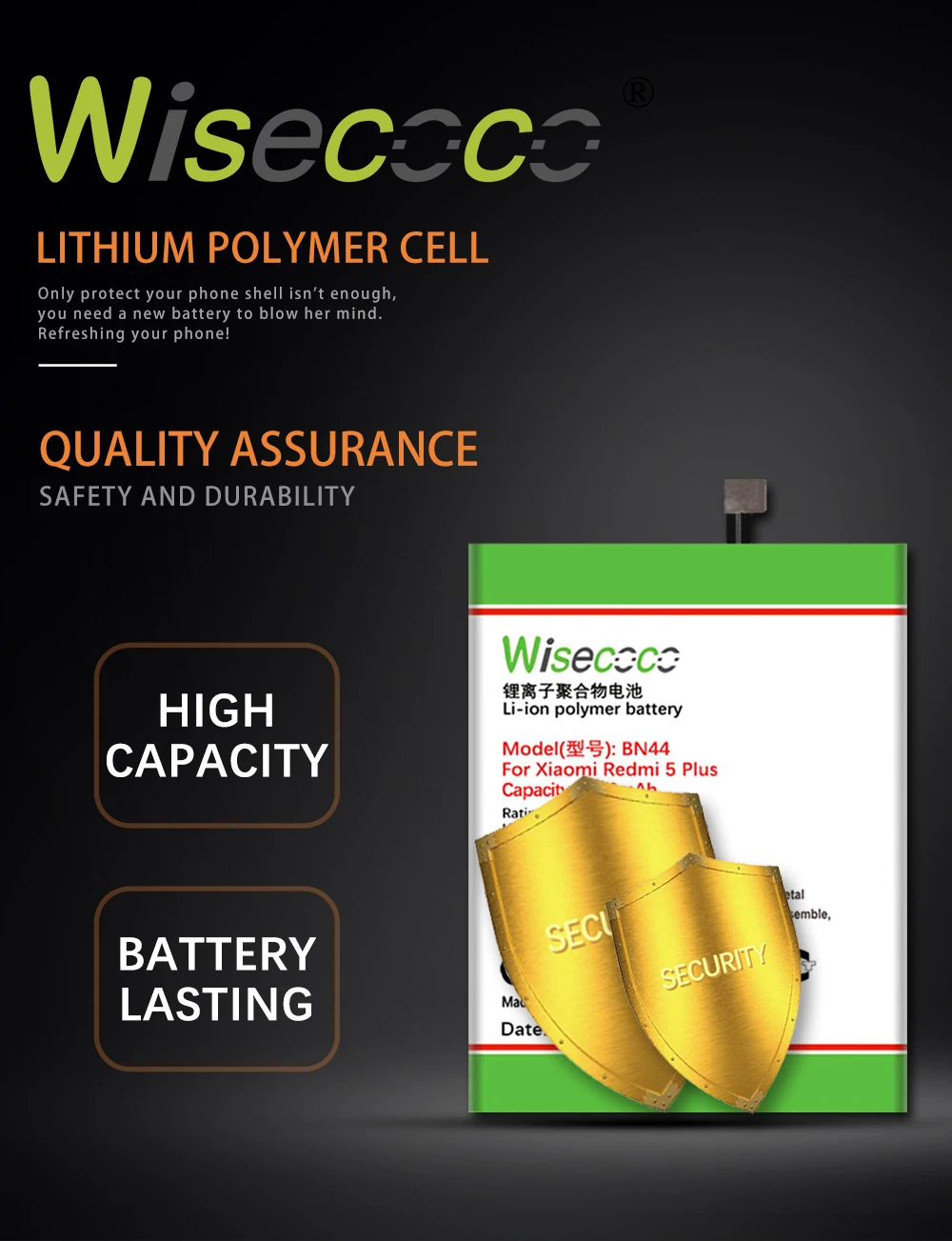 Новый аккумулятор Wisecoco BN44 5050 мАч для Xiaomi Mi Redmi 5 Plus, Высококачественная запасная часть для ремонта телефона + номер для отслеживания