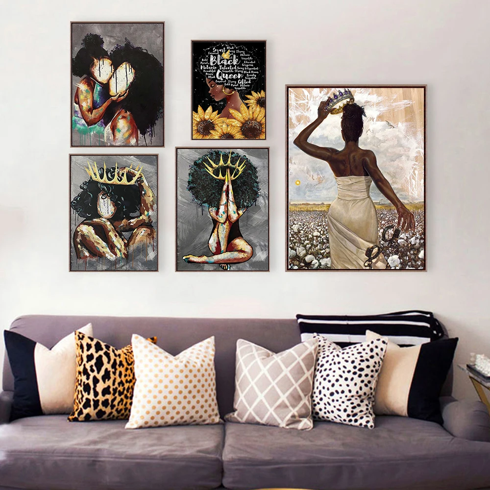 Африканская сексуальная королева, черная женщина, фотография, настенное искусство, Абстрактная Картина на холсте, печать, декоративные картины, подарок для гостиной